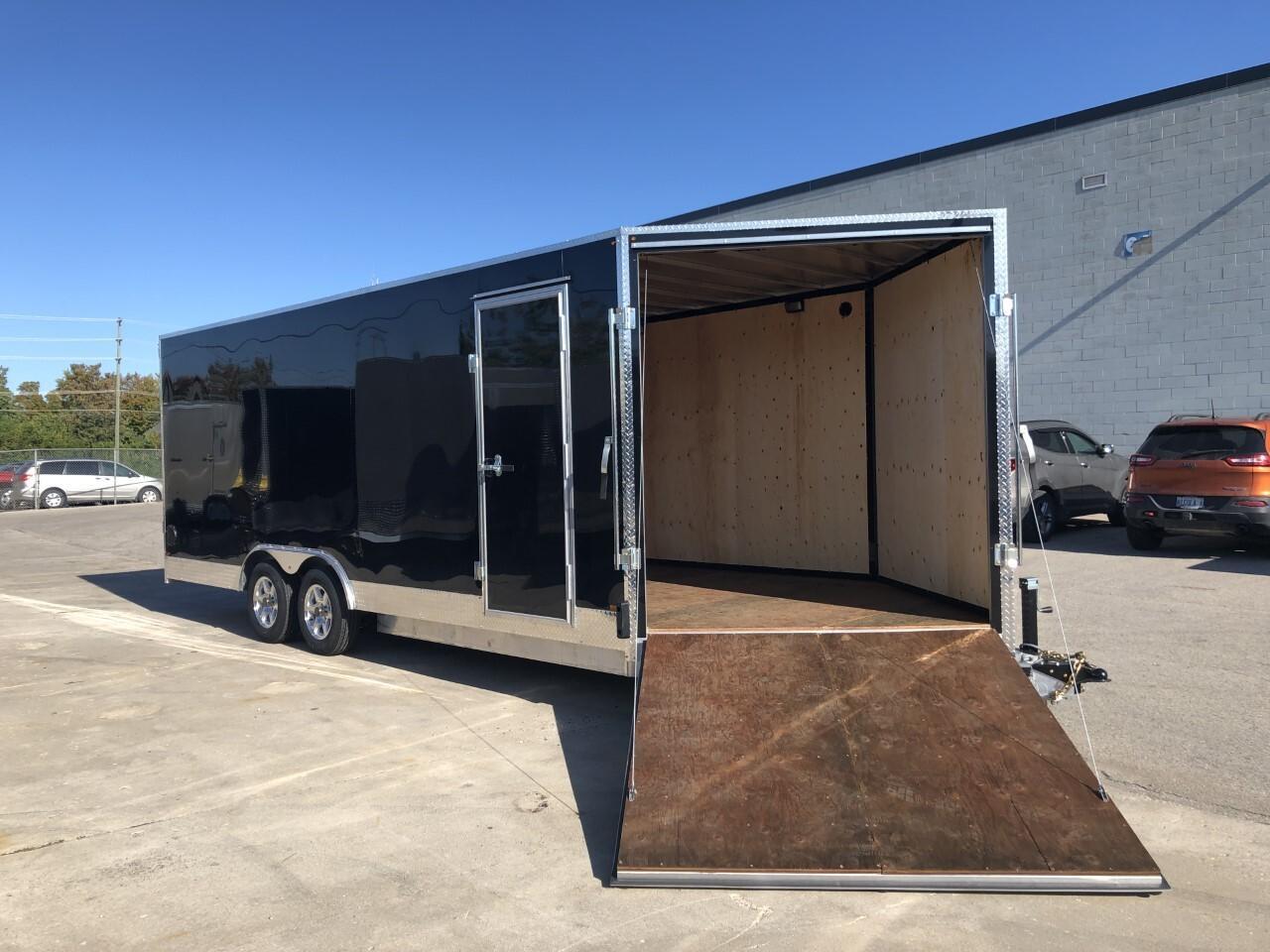 Text or Call 519-400-6666 for quick response! Canadian Built Trailers - Cargo Trailers Custom build your trailer at Troys Toys today! Visit our website www.troystoys.net for full inventory. OVER 100 TRAILERS IN STOCK!! *Prices do not include sales tax or registration* This Model: 2020 CTC 8.5X20 V-Nose (Size does not include the v-nose; size plus the v-nose) HEIGHT: 7' COLOUR: Black FRAME: Aluminum REAR DOOR: Ramp 15 RADIAL TIRES ON: 15 Galvanized Wheels AXLE(S) TYPE: Tandem, dropped AXLE(S) CAPACITY: 3500lb/ea HITCH: 2 5/16 Ball JACK: 8,000 Lb. OTHER OPTIONS: RV Latch, Pressure Treated Plywood Flooring, Extended V-Nose 5', Front Ramp Standard Options with all CTC Trailers: Screwless exterior cladding (.30) with checker plate trim all around Polished aluminum fenders One piece aluminum roof Angled diamond checker plate stone guard on v-nose 16 o/c square tubing frame (Roof, Walls & Floor) Curb-side man-door 3/4 fir plywood floor 3/8 fir plywood on walls Exterior L.E.D lighting Side Vents Bar Lock For the full 2020 Canadian Trailer Company Lineup, please visit www.canadiantrailercompany.net All trailers come with a 3-year manufacturers warranty. Some conditions apply. See store for details.