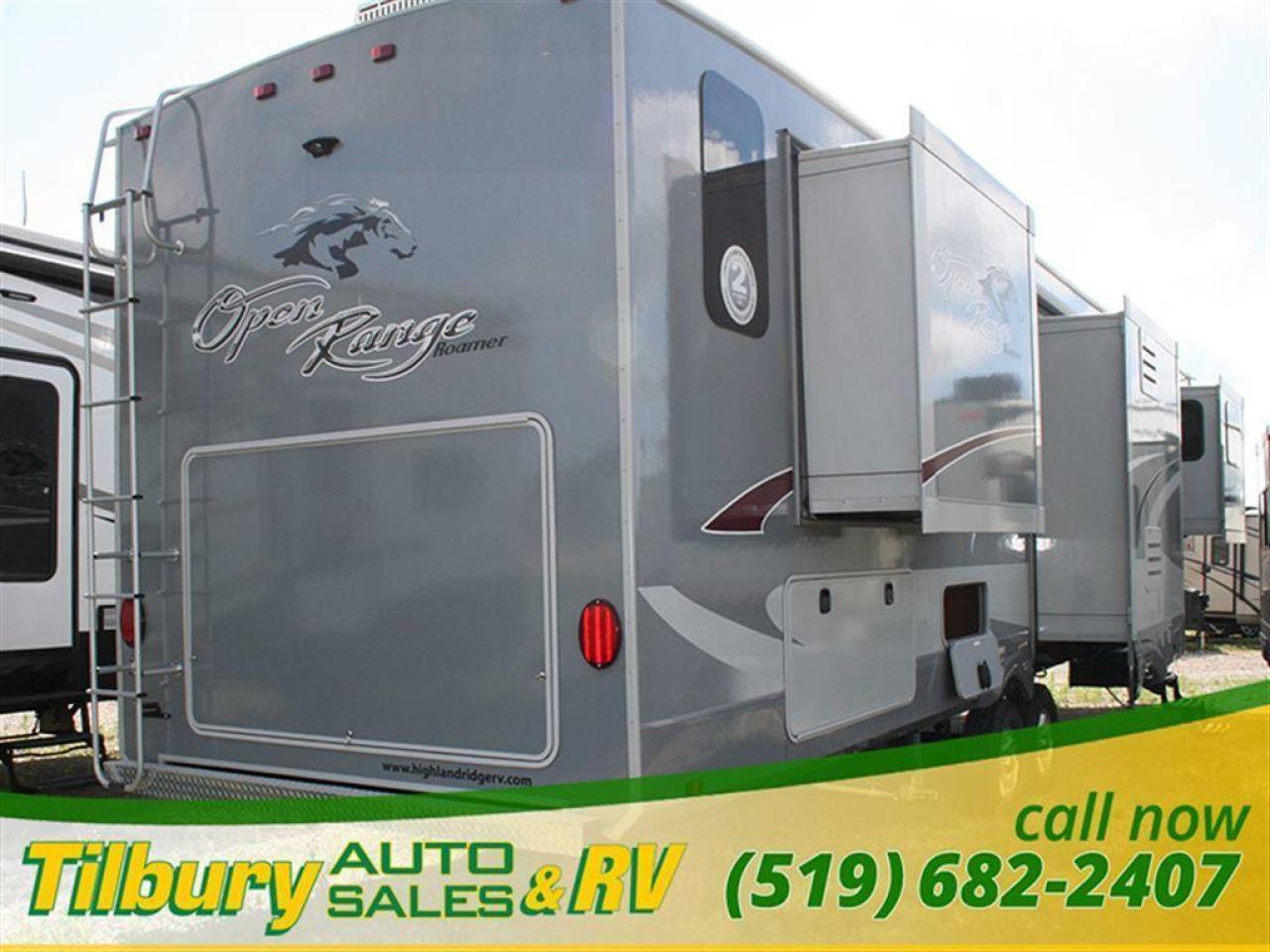 Enjoy the spaciousness of this Open Range Roamer fifth wheel by Highland Ridge RV featuring FIVE slides for more interior space, a front wall entertainment center and living space, plus a bath and a half. You and your family will find all the accommodations needed to make any camping trip enjoyable.