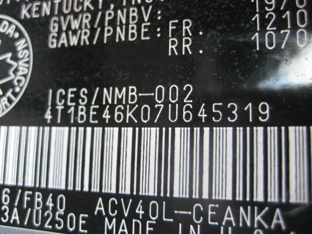 4T1BE46K07U645319