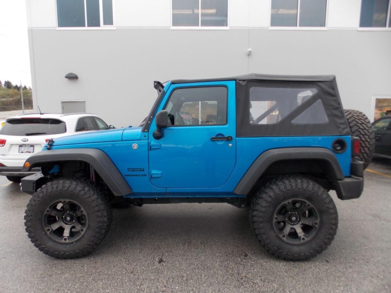 This 2014 Jeep Wrangler Sport (soft top) comes with alloy wheels, lift kit, Aurora LED light bar, tow winch, fog lights, spare tire, soft top, steering wheel media controls, CD player, AM/FM radio, rear defrost and so much more!