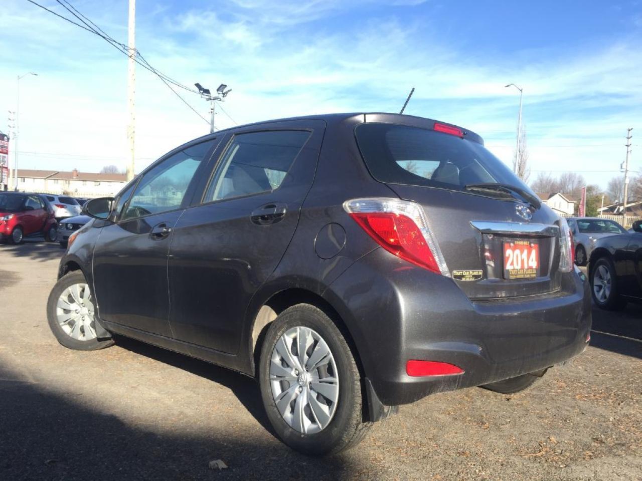 This 2014 Toyota Yaris has LOW KM's and PRICED TO SELL!!! WON'T LAST LONG!!! Comes with BLUETOOTH, AUX/CD/Mp3 connectivity for your IPOD/IPHONE or ANDROID music playing device, Cruise Control, Hatchback, Clean interior and exterior plus more features. This vehicle was previously used as a daily rental. Call 1-519-686-7253 or Visit 443 Exeter Rd. That Car Place.Â