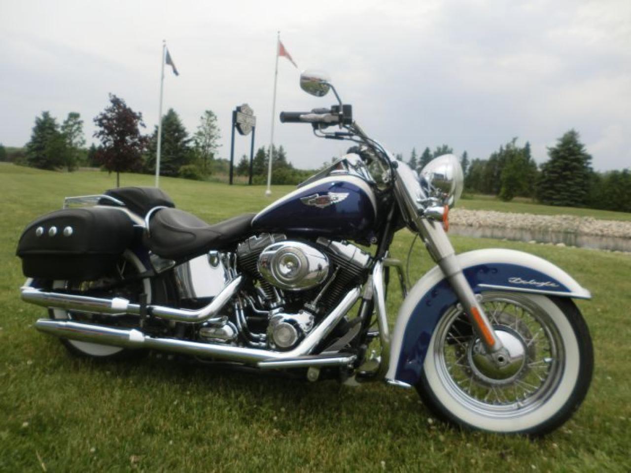 Beautiful Softail Deluxe in White Gold Pearl and Cobalt Blue ! Detachable Deluxe windshied, Deluxe lockable saddlle bags, passenger pillion,luggage rack. 96 cubic inch and six speed !! H-D LOW INTEREST RATES ..!! OUR PRICES FOLLOW THE OMVIC REGULATIONS OF FULL DISCLOSURE IN PRICING NO HIDDEN COSTS OR FEES PRICE SHOWN INCLUDES THE BASIC BIKE PRICE AND OPTIONS, TIRE FEE,OMVIC FEE,ADMINISTRATION FEE.. Prices ARE SUBJECT TO HST !!