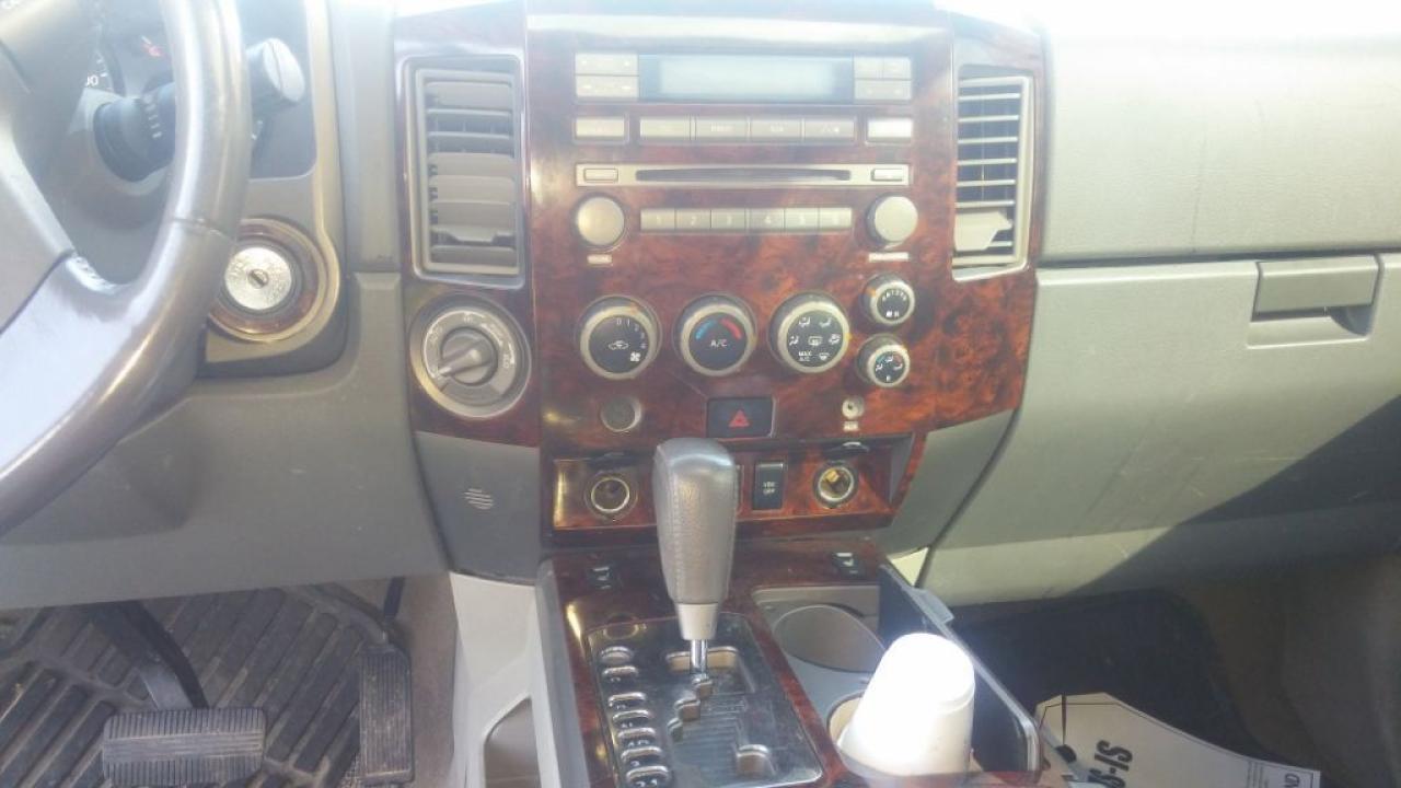 2004 Nissan Armada LE Silver $6799.00 CERT / 212923 KMS 4WD 5.6L V8 DOHC 32V 4-Wheel ABS Engine speed-sensitive power-assisted rack-and-pinion steering alloy wheels 5 speed automatic Traction Control AM/FM In-dash 6 CD changer stereo radio Bose audio system Remote Audio Controls