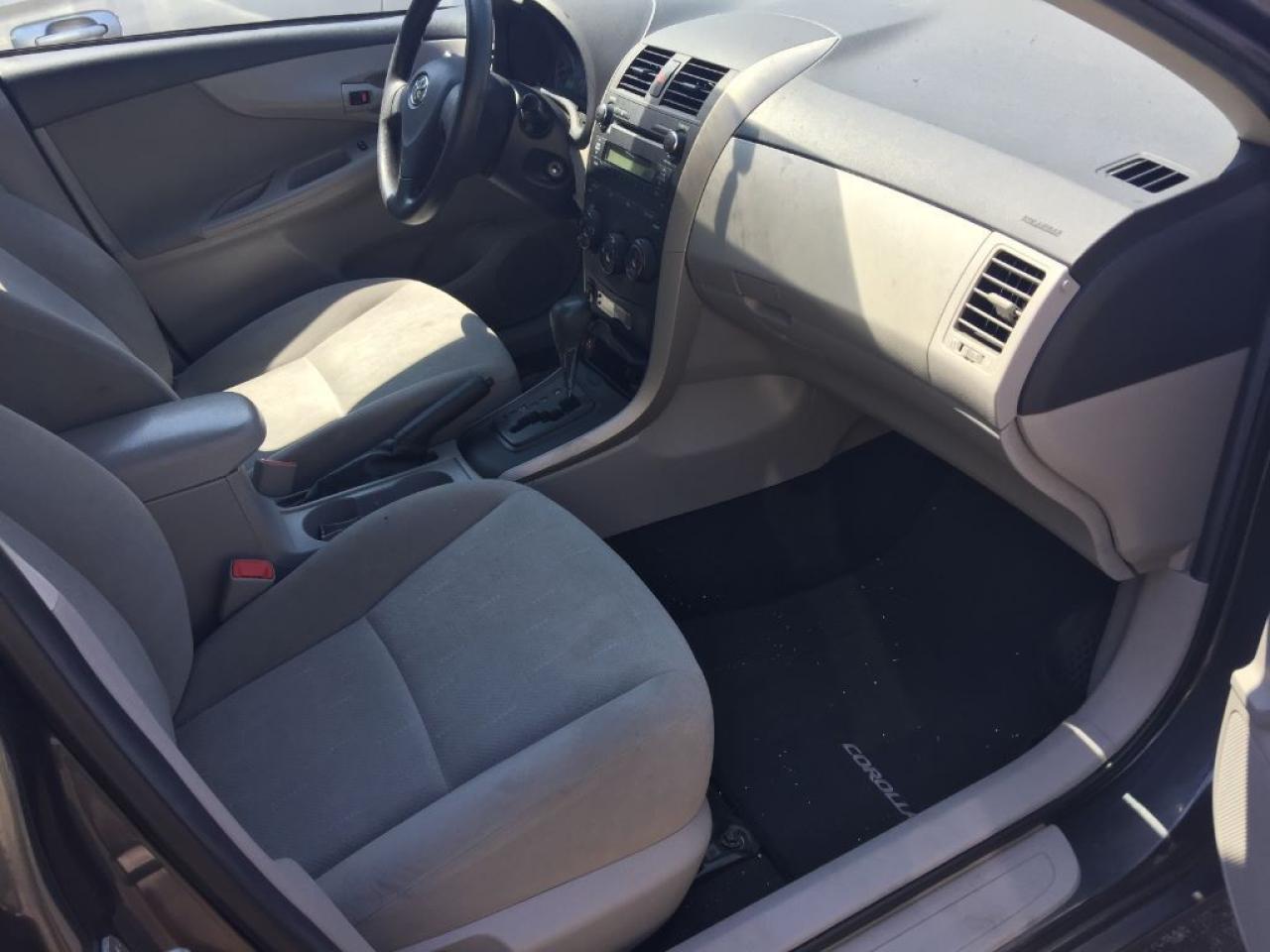 2011 TOYOTA COROLLA, with 124,029kms, certified and ready for the road. Smoothly drives and remain with peace of mind? you are set to drive. Overall it is taken care, clean inside and outside, no rust, no dent, no ding, with original paint. Looks like black outside but is dark-gray.