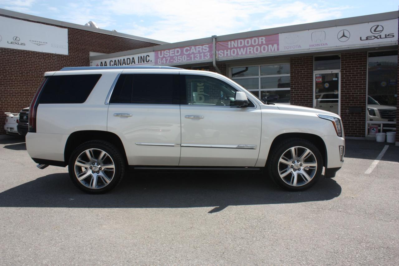 2015 CADILLAC ESCALADE WHITE ON BEIGE LEATHER INTERIOR, COMES WITH FULL POWER GROUP OPTIONS, LEATHER, SUNROOF, NAVIGATION, 360 CAMERA, HEADS UP DISPLAY, DVD, XM RADIO, CHROME WHEELS, IN AND OUT RUNNING BOARDS, HEATED AND COOLED SEATS POWER WINDOWS, POWER LOCKS, AND MUCH MUCH MORE, MUST SEE THIS VEHICLE COMES FULLY CERTIFIED, E-TEST AND ADMIN FEES ALL INCLUDED IN THE PRICE, FOR MORE INFO PLEASE CONTACT US AT 1855-350-1313