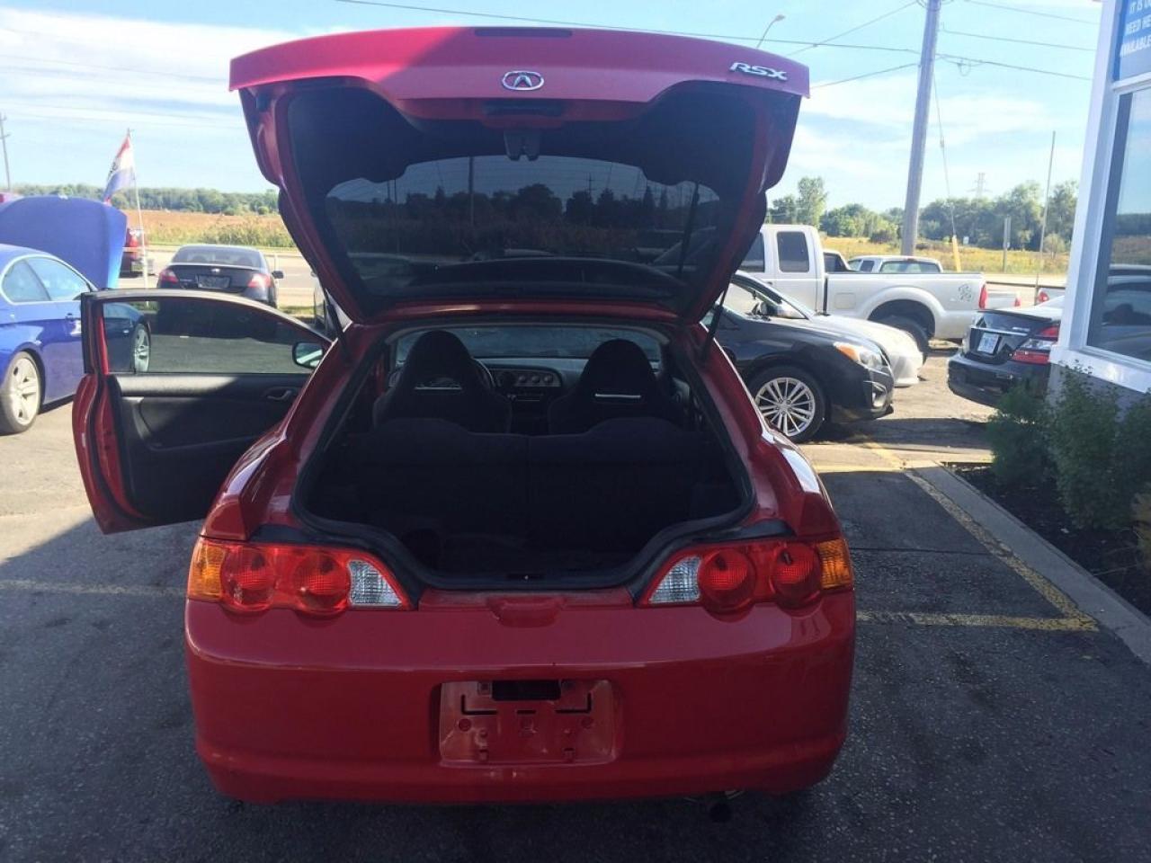 Local trade in just arrived! Gorgeous red on black Acura Rsx, JVC MP3/cd deck, black wheels, and much more! Don't miss out on this gorgeous little rocket. Vehicle is sold as is, but feel free to have the vehicle inspected locally before purchase. Contact our sales staff now 519-652-5652