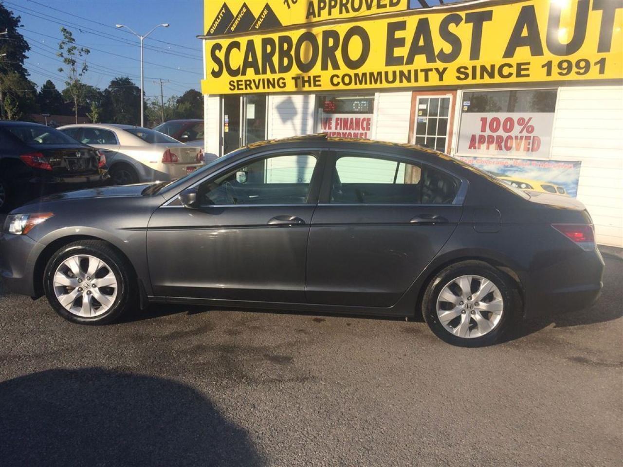 EXL / LEATHER / ROOF / ALLOYS ,WE FINANCE EVERY ONE , 23 YEARS SERVING THE COMMUNITY,SAME LOCATION, SAME#4162870020 ------------------------------------------------------------------------------------------------------------------------------------ 4D , AUTO ,4 CY , EX-L , LEATHER , ROOF , FULLY LOADED WITH ALLOY WHEELS AND FOG LIGHTS , NEW TIRES , EQUIPPED WITH COLD AIR CONDITION , GREY EXTERIOR ON DARK GREY LEATHER INTERIOR , POWER AND HEATED SEATS , POWER WINDOWS , POWER DOOR LOCK , CRUISE CONTROL , TILT STEERING , POWER STEERING CONTROL , POWER MIRRORS , REAR SPOILER AND MUCH MORE , FULLY LOADED , CLEAN , LOCAL NEW CAR TRADE , LOOKS AND DRIVES LIKE NEW --------------------------------------------------------------------------------------------------------------------------------------------------- PLEASE MAKE SURE ALL INFORMATION AND OPTIONS ( AIR CONDITION) ARE CORRECT AND WORKING PRIOR TO PURCHASE , ADVERTISING COULD HAVE MISTAKES (COPY &PAST) PLEASE READ ALL DOCUMENTATION ( HISTORY ) AND BILL OF SALE , DUC FEE $495 WILL APPLY IN FINANCE DEALS --------------------------------------------------------------------------------------------------------------------------------------------------- ALL FUNDS HAS TO BE CERTIFIED ONLY . *All Prices are unfit prices plus HST. Vehicle is not drivable if not certified and not E-tested. SAFETY AND E TEST ARE not available due to the low low price SAFETY AND E TEST ARE AVAILABLE FOR $495 WITH 36 DAYS WARRANTY ON ALL THE SAFETY ITEMS *Call now and book your appointment for a test drive.-.-. 416 287 0020.-.-. no admin fee on any used vehicle purchase --------------------------------------------------------------------------------------------------------------------------------------------------- At SCARBORO E AUTO LTD we try and make your dreams come true at www.scarboroeauto.ca Good credit, bad credit or no credit at all. Our team of finance managers have worked their magic arranging finance or a lease for many of scarboro e auto?s customers. scarbro e auto, used car and all makes certified used vehicle volume dealer is located in scarborough ( pickering boarder) 4663 Kingston roads. Just 2 lights east of morning side scarborough. Not far from pickering , Ajax, Whitby, Oshawa, Markham, Toronto, New market, Richmond hill, Thorn hill, Agincourt, Milliken, Malvern and much of the greater Toronto area or GTA. if you are looking for a used Honda civic, a used Honda , a used toyota , a used nissan, a used mazda, a used , a used suzuki, a used kia, a used subaru, a used ford,a used chevy,a used gmc, a used pontiac, a used buick, a used bmw , a used mercedes , a used vw , a used audi , a used van or truck. scarboro e auto is waiting for you with one of the largest inventories in the greater Toronto and Pickering area. scarboro e auto has a great selection of certified used vehicles. our certified used vehicles are listed in auto trader, Toronto?s kijiji and our own web site www.scarboroeauto.ca to be eligible as one of the oldest certified used car . scarboro e auto offer preferred finance rates, powertrain warranty, e tested, safety and certified. Come in or call us at 416 287 0020 and ask us about a used car , a used van, a used SUV. Do not wait for a Saturday sale to take advantage of one of the biggest selection of used low price cars, vans and used SUV's in Ontario. scaroboro e auto ltd is your best pick