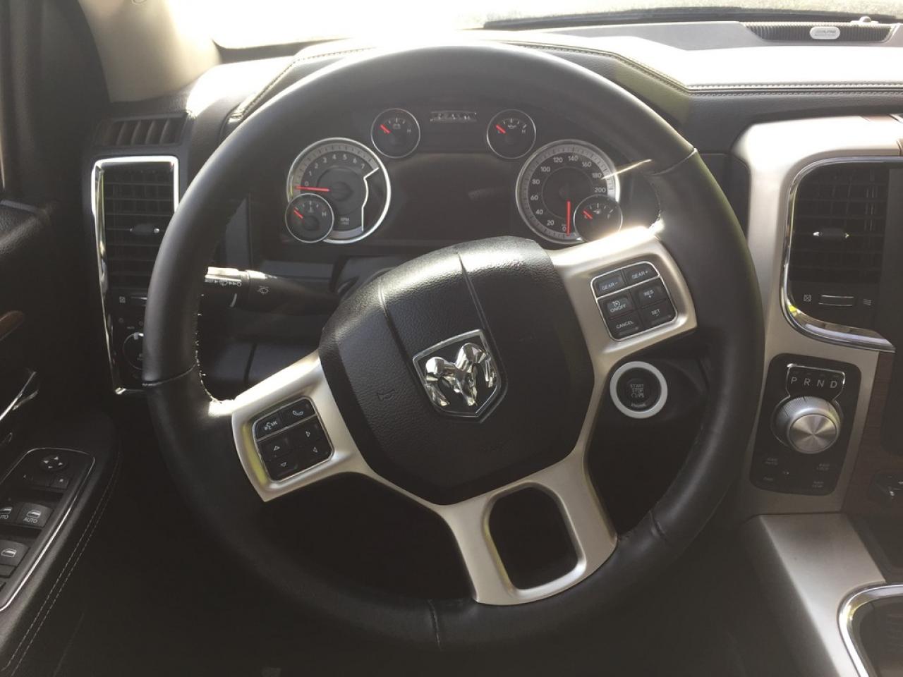 **2016 RAM 1500 LARAMIE CREW CAB. 5.7L V8 HEMI, WITH THE LARGER 6.4INCH BED, 8 SPEED AUTOMATIC TRANSMISSION, PUSH BUTTON START, REMOTE START, REAR CAMERA, TRAILER TOW MIRRORS, HEATED FRONT SEATS, HEATED STEERING WHEEL, VENTILATED SEATS.POWER SUNROOF AND MUCH MORE.. FORMER DAILY RENTAL..VEHICLE LOCATED AT ROADSPORT CHRYSLER 2851 EGLINTON AVENUE EAST TORONTO ONTARIO 416-264-2501.