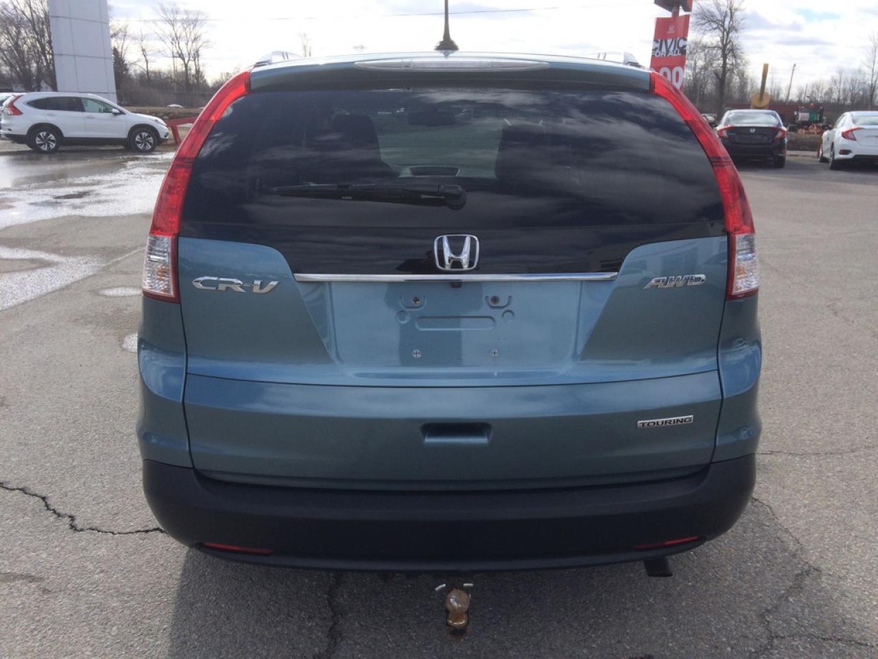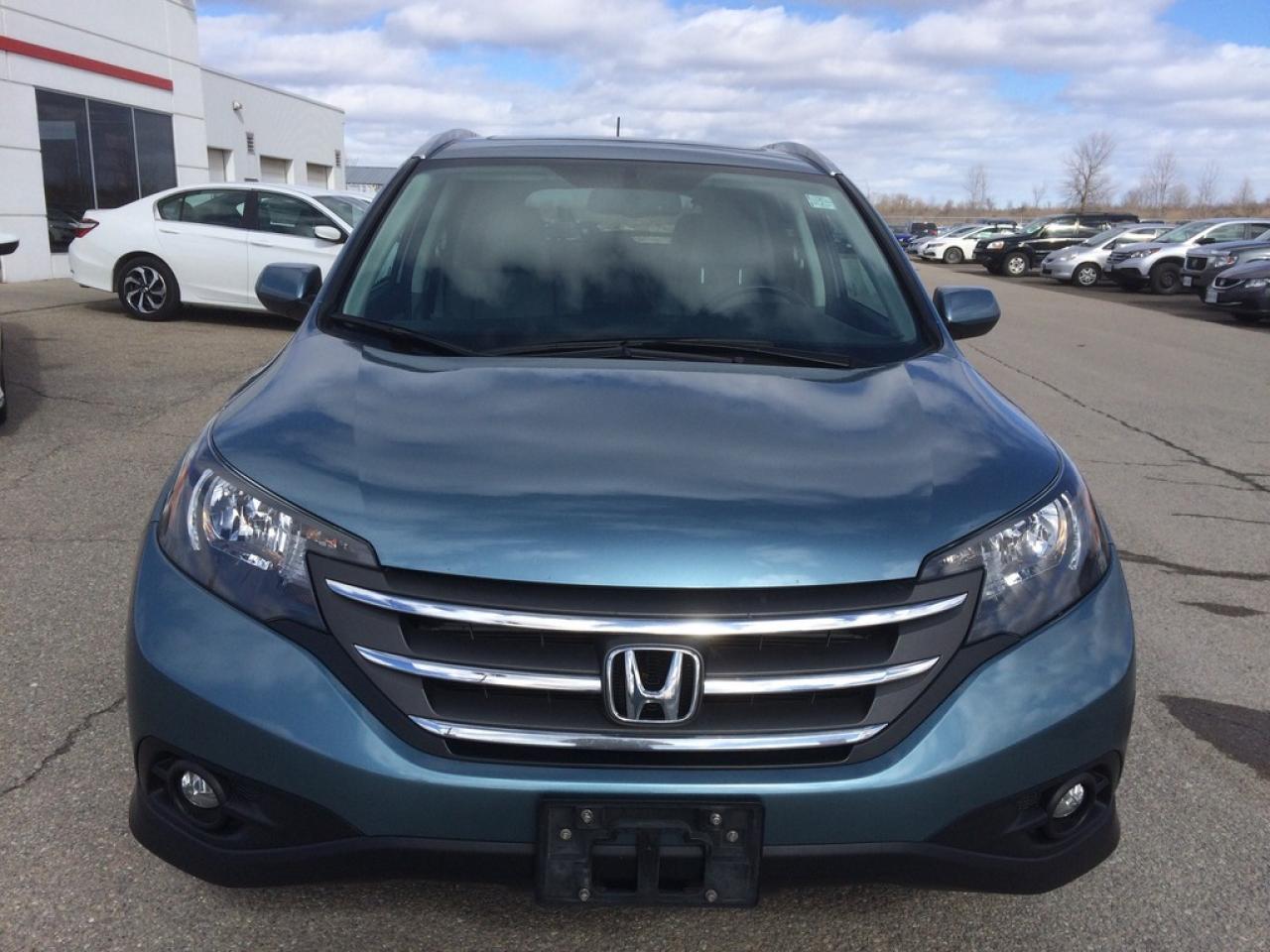 One owner local trade fully loaded CRV Touring. Has been Honda serviced since new and no accident history. It's equipped with every feature available for a 2014 CRV. Leather, heated seats, Navigation, Back-up camera, Bluetooth hands free, One touch fold down rear seats, and much more. Exterior is finished in beautiful Mounain Air Metallic.Â
