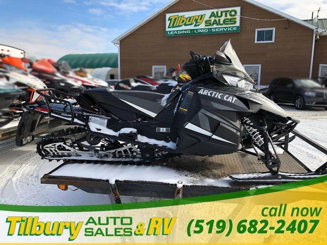 Call us at 519-682-2407 https://www.youtube.com/watch?v=dFgZCascafg Push-button reverse, dual halogen headlight (2-bulb), front sport bumper, heavy-duty MRP rear bumper, electric start, heated seat, adjustable handlebar, mid-height windshield, deluxe digital/analog gauge, electric gas gauge, low oil light, coolant overheat light, clock, altimeter, accessory outlet, high/low hand & thumb warmers, belt holder, mountain handlebar, rear storage bag, handlebar storage bag, cargo rack, mirrors, air pump. Length x Width 317.5 cm x 121.9 cm Ski Stance 106.7-109.2 cm adjustable Ski Type / Runner Mountain 15.2 cm/Dual skag w/carbide Track Type 38.1 cm x 358.1 cm Cobra / 3.2 cm