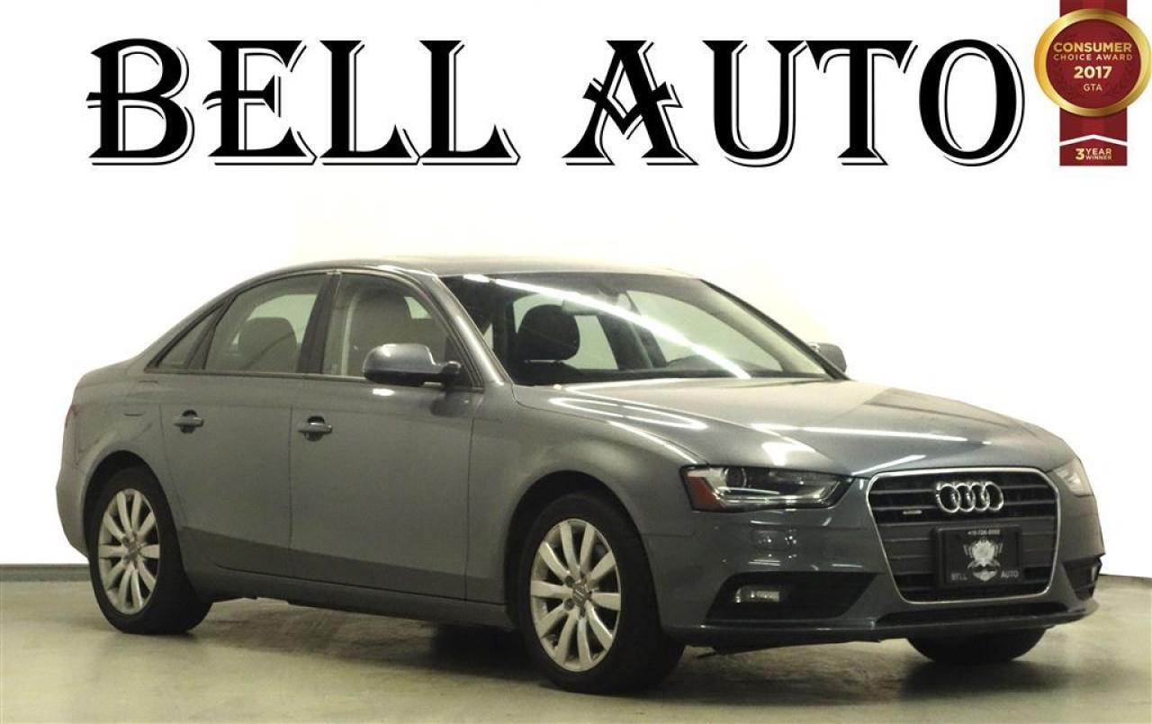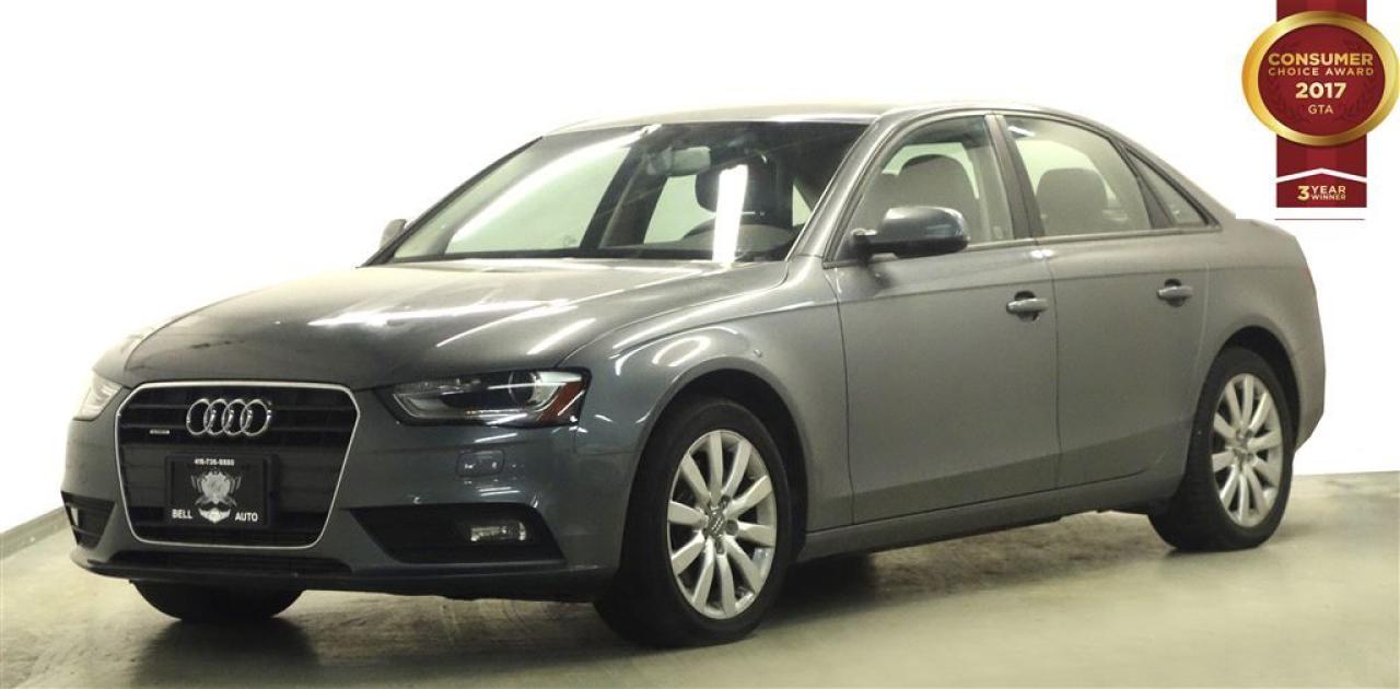 At Bell Auto our number one goal is to provided excellent customer service to all of our customers. We offer the lowest vehicle prices in the market in addition to best financial banks available to provide you with the lowest and most affordable interest rates & monthly payments. In addition, we have two certified mechanics and a mechanical shop, detailing and service department in the back of our dealership. Our customer relationship means the most to our company as we have been in business for 16 plus years, with a selection of inventory of over 200 vehicles. Come today to our spacious family environment showroom, or staff is delighted to meet all of you. You will have a pleasant shopping experience that is fun, informative, and never high pressured. Stop by our dealership or give us a call for more information. All vehicle's can be Safety Standards Certificate for an additional $399, if no Safety Standards Certificate then as per OMVIC Regulations the vehicle is deemed to be not drivable, no Safety Standards Certificate. Bell Auto is a OMVIC Dealership that has an A+ Rating on the Better Business Bureau, 3 Year winners of the Consumer Choice Awards for the Best Dealership In the G.T.A. and Surrounding Areas, The Readers Choice Award Winners for Detailing, Over All Dealership, Import Dealership and Used Car Dealership. Step into the 2014 Audi A4! First and foremost is the striking exterior. This 4 door, 5 passenger sedan still has less than 120,000 kilometers! Audi prioritized practicality, efficiency, and style by including: leather upholstery, telescoping steering wheel, and the power moon roof opens up the cabin to the natural environment. Under the hood you'll find a 4 cylinder engine with more than 200 horsepower, and for added security, dynamic Stability Control supplements the drivetrain. We pride ourselves on providing excellent customer service. Stop by our dealership or give us a call for more information.