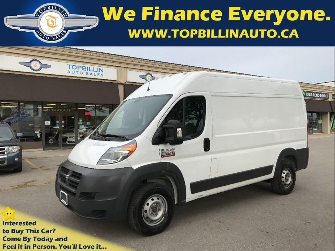 Just Arrived...Local Ontario Ram ProMaster 2500 Cargo Van with CLEAN CARPROOF - ACCIDENT FREE. The same body style as the 2015 models & dodge mercedes sprinter. This cargo van has full service history and all the service has been trough the dealer. This 2014 Ram ProMaster 2500 Cargo Van will be sold certified and emission tested. No extra or hidden fees & Free Accident History Report are included!Used Car Loan, Financing, Leasing for Company or Personal use is available at the LOWEST possible rate! **Haggle Free**Hassel Free**fair Pricing** ------------------------------------------------------------------------------------------------------------------ Discover your Exclusive used car loan offer with Easy financing application and a proven way to save money. We offer used car loans for everyone! Good credit car loans, Bad Credit Car loans, No credit car loans, Newcomers to Canada car loans & used car leasing. Used car loan rates start at %4.9, Do Not pay up to 90 days OAC. Apply Today! Secure, No obligation, you will love the results. www.topbillinauto.ca Cost of borrowing $10,000 @ %4.9 over 60M is $1,300 ------------------------------------------------------------------------------------------------------------------ Buy used cars with confidence because we are OMVIC & UCDA registered used car dealer, No extra or hidden fees, Every used car comes with Free Accident History Report & 2 years powertrain WARRANTY included in the price! ------------------------------------------------------------------------------------------------------------------ We know used car shopping is not easy! Therefore we handpicked 70 of the most wanted used cars at bargain prices for you. We keep all the cars clean, detailed & shiny inside our indoor showroom ready for you to come and see them in person and enjoy. TEXT MESSAGE US at 647-233-2273 ------------------------------------------------------------------------------------------------------------------ Become an insider at www.topbillinauto.ca Get notified for any price change and exclusive offers. ------------------------------------------------------------------------------------------------------------------ FREE 2 YEARS WARRANTY INCLUDES 24,000 KILOMETERS, $600 PER CLAIM, COVERS (ENGINE, TRANSMISSION, DIFFERENTIAL, TOWING ALLOWANCE & TRAVEL & HOTEL ALLOWANCE) CANADA WIDE. Warranty Upgrade is Available. FOR ALL PROMOS AND CAR LOANS SOME RESTRICTIONS MAY APPLY. Can't find your desired used car in our inventory? NO Problem! We will find your ideal used car. Call us today! Price + HST + Licensing, NO EXTRA CHARGES! ------------------------------------------------------------------------------------------------------------------ Indoor Showroom Location: 7855 KEELE ST, VAUGHAN, ON, L4K1Y6 (JUST NORTH OF HWY7 ON KEELE ST.) BUSINESS HOURS: Mon-Fri 9:30 AM to 7:30 PM, Saturday 10 AM to 5 PM, Sunday 12 PM to 4 PM