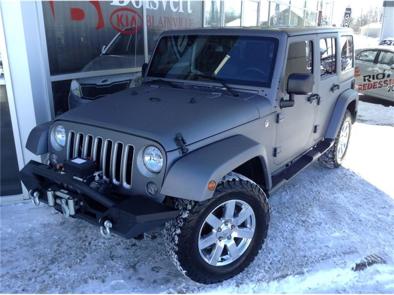 JEEP WRANGLER UNLIMITED 2016GPS / NAVIGATION GROUPE ÉLECTRIQUE WINCH SUR LE BUMPER FAITE VITE FINANCEMENT FACILE Boisvert Kia Blainville situé au 416 boul Curé Labelle, Blainville. Bien implanté dans la communauté, facile d'axes par les 2 grande autoroute, soie la 640 ou l'autoroute 15. Que vous soyer de Montréal ou bien de Laval, un trajet de 10 a 15 minutes vous sufira pour vivre une expérience d'achat unique.Boisvert Kia a reçu la prestigieuse distinction « Concessionnaire Platine « ce qui vous donne plusieurs avantage, comme la possibilité de vous procurer la voiture Soul EV complètement électrique.Sur place, tout vous semblera très facile et rapide. Une possibilité de financement à partir de 0.9% ainsi que du financement facile de 2e et 3e chance au crédit. Avec son département de voiture d'occasion et son programme Certifié Kia Canada, tout est mis à votre disposition.Un rapport d'inspection en 135 points, un rapport Carproof, liste des réparations de reconditionnement complète, ainsi qu'une remise en état : Lavage, esthétique complet. Sur place votre voiture d'échange seras évaluée au meilleur prix du marché !!!Venez vivre une expérience d'achat 5 Etoiles chez Boisvert Kia à Blainville.Boisvert Kia Blainville is located at 416 Curé Labelle Blvd, Blainville. Well implanted in the community, with an easy driving access directly from the 2 major highways 15 (exit no. 25) and the 640. If, you are located either from Montreal or Laval, a short trip of 10 or 15 minutes is being just a-way for living a unique buying experience. Boisvert Kia, winning award of the prestigious distinction of ``platinum dealership`` is offering many advantages as the possibility of getting the unique Soul EV electric car. In house, everything will seem very fast and easy for you. One possibility of financing from 0.9 % as well as the easy financing of 2nd and 3rd chance on the credit. With his department of second-hand car and its Certified Kia program, everything is provided to your disposal. A 135-point inspection report, a Carproof report including a complete list of repairs, as well as a restoration: Complete esthetic wash. On the spot, your car exchange will be evaluated at the best prices of the market!Come and live a 5 stars buying experience!