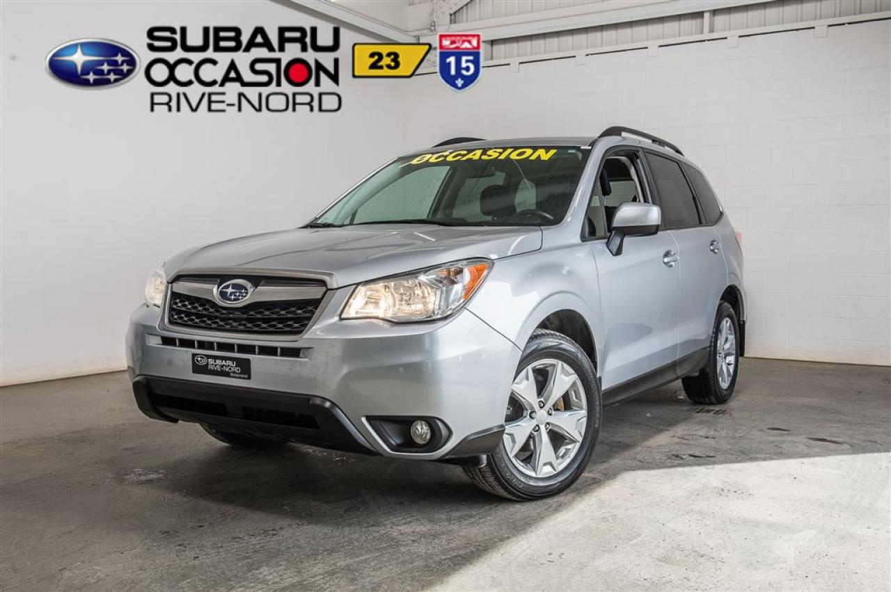 Une seule propriétaire! INSPECTÉ EN 152 POINTS par des techniciens Subaru. Programme « Véhicules dOccasion Certifiés » disponible. Conditions en succursale.One owner! 152-POINTS INSPECTION from factory-trained Subaru technicians. « Subaru Certified Pre-Owned Vehicles Program » available. Conditions in store.2015 Subaru Forester Convenience. Automatique, Bluetooth, Caméra de recul, Intérieur en tissus, Toit ouvrant, Jantes en alliage, Phares antibrouillards, Sièges chauffants, Air climatisé, Régulateur de vitesse, Groupe électrique, Lecteur CD/MP3/AUX/USB/Sirius/XM, Anti-patinage, Bien équipé et propre! Kilométrage vérifié. Balance de garantie valide jusquau 10 février 2020 ou 100 000 km. Garantie supplémentaire disponible. Mécanique et esthétique WOW! Conditions en succursale!2015 Subaru Forester Convenience. Automatic, Bluetooth, Back-up camera, Fabric interior, Sunroof, Alloy wheels, Fog lights, Heated seats, Air conditioning, Cruise Control, PowerGroup, CD/MP3/AUX/USB/Sirius/XM, Traction control, Well equiped and clean! Verified mileage. Warranty valid until February 10th, 2020 or 100 000km. Additional warranty available. Mechanically and aesthetically WOW! Conditions in store!LE PLUS GROS INVENTAIRE DE SUBARU DOCCASION AU CANADA!! NOS HAUTS STANDARDS DE QUALITÉ, LE PLUS GRAND CHOIX AU PAYS, LE MEILLEUR RAPPORT QUALITÉ/PRIX ET UNE APPROCHE SANS PRESSION FONT DE SUBARU RIVE-NORD UNE VALEUR SÛRE POUR L'ACHAT DE VOTRE PROCHAIN VÉHICULE D'OCCASION.THE BIGGEST PRE-OWNED SUBARU INVENTORY IN CANADA!!OUR HIGH QUALITY STANDARDS, THE BIGGEST INVENTORY TO CHOOSE FROM IN THE COUNTRY, THE BEST QUALITY/PRICE, AND OUR NO PRESSURE APPROACH, MAKES SUBARU RIVE-NORD A SURE BET FOR THE PURCHASE OF YOUR NEXT PRE-OWNED VEHICLE.Pourquoi acheter tout autre modèle quand on peut profiter de la fiabilité et de l'incroyable traction intégrale (AWD 4x4) d'un Subaru Forester!!! WWW.SUBARURIVENORD.COMWhy buy another model when you can enjoy the incredible reliability and incredible AWD of a Subaru Forester!!! WWW.SUBARURIVENORD.COM