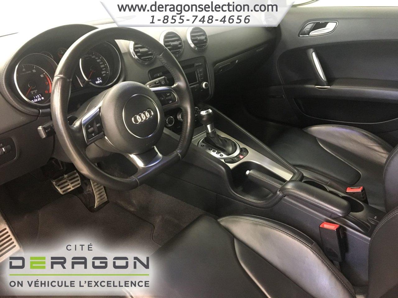 Audi TT 2.0T COUPE S LINE + QUATTRO + CUIR 2.0T COUPE S LINE + QUATTRO + CUIR 2012Régulateur de vitesse, Essuie-glaces intermittents, Freins ABS, Contrôle de stabilité, Coussin gonflable conducteur, Coussins gonflables latéraux, Lecteur CD, Lecteur MP3, Portes électriques, Sièges électriques, Tachymètre, Vitres électriques, Air climatisé, Intérieur en cuir, Climatisation deux zones, Commandes audio au volant, Sièges arrières rabattables, Sièges chauffants, Volant ajustable, Aileron, Tapis protecteurs, Ordinateur de bord, Tout équipé, Radio AM/FM, Phares automatiques, Rétroviseur électrique, Direction assistée, Télédéverrouillage, Rétroviseurs chauffants, Siège à réglage électrique, Système d\'alarme, Freins à disque, Sièges chauffants - Avant, Rétroviseurs électriques, Jantes en alliage, Antipatinage, Phares antibrouillards, Système de surveillance de la pression des pneus, Sièges baquets, Climatiseur automatique, Rétroviseur à atténuation automatique, Aluminium, Climatisation