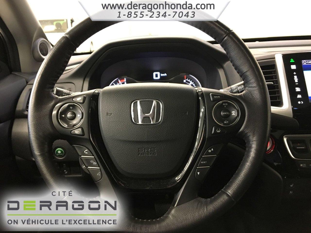 Honda Pilot TOURING+AWD+SYST?ME DIVERTISSEMENT+SI?GES VENTIL?S TOURING+AWD+SYST?ME DIVERSTISSEMENT+SI?GES VENTIL?S+ATTELAGE REMORQUE+CAM?RA DE RECUL+TOIT OUVRANT 2016Régulateur de vitesse, Toit ouvrant, Essuie-glaces intermittents, Essuie-glace arrière, Anti-démarreur, Freins ABS, Contrôle de stabilité, Coussin gonflable conducteur, Coussins gonflables latéraux, Démarreur à distance, Lecteur CD, Lecteur DVD, Lecteur MP3, Portes électriques, Sièges électriques, Tachymètre, Vitres électriques, Air climatisé, Intérieur en cuir, Climatisation deux zones, Commandes audio au volant, Sièges chauffants, Siège mémoire, Volant ajustable, Moonroof, Tapis protecteurs, Vitres teintées, Attelage remorque, Phares haute intensité, Ordinateur de bord, Tout équipé, Caméra de recul, Radio AM/FM, Rétroviseurs, Volant gainé de cuir, Phares automatiques, Rétroviseur électrique, Commande audio arrière, Sièges arrières chauffants, Direction assistée, Télédéverrouillage, Sièges de troisième rangée, Rétroviseurs chauffants, Siège à réglage électrique, Coussins gonflables arrière pour la tête, Siège conducteur - soutien lombaire, Siège refroidissant, Essuie-glace détecteur de pluie, Démarrage sans clé, Freins à disque, Sièges chauffants - Avant, Rétroviseurs électriques, Jantes en alliage, Antipatinage, Phares antibrouillards, Verrous de sécurité pour enfants, Système de surveillance de la pression des pneus, Sièges baquets, Prise Auxiliaire, Système de divertissement vidéo, Technologie Bluetooth intégrée, Port USB, Climatisation arrière, Rétroviseur à atténuation automatique, Surveillance de l'angle mort, Climatisation, Volant chauffant