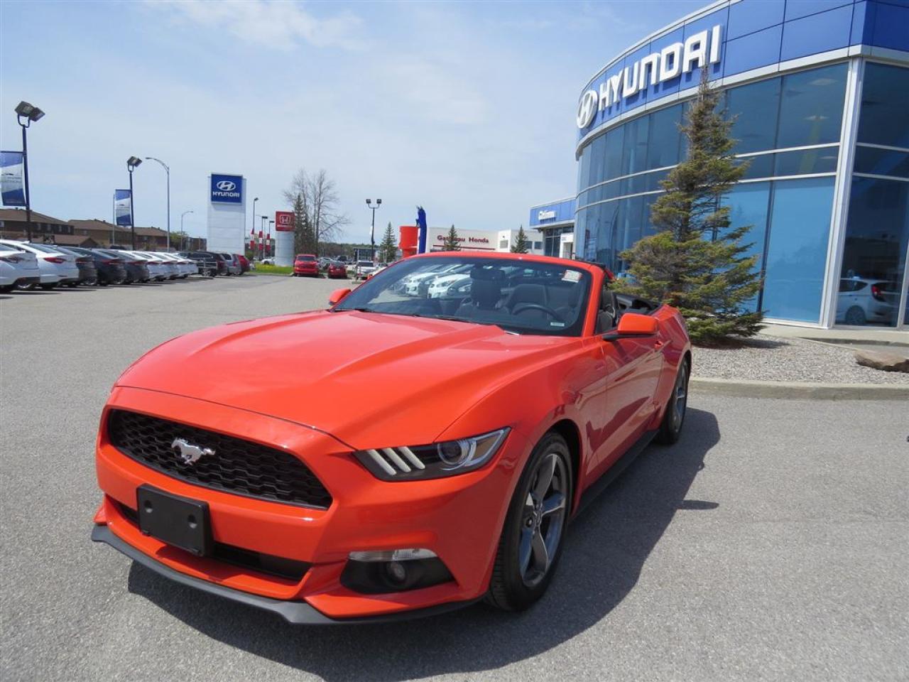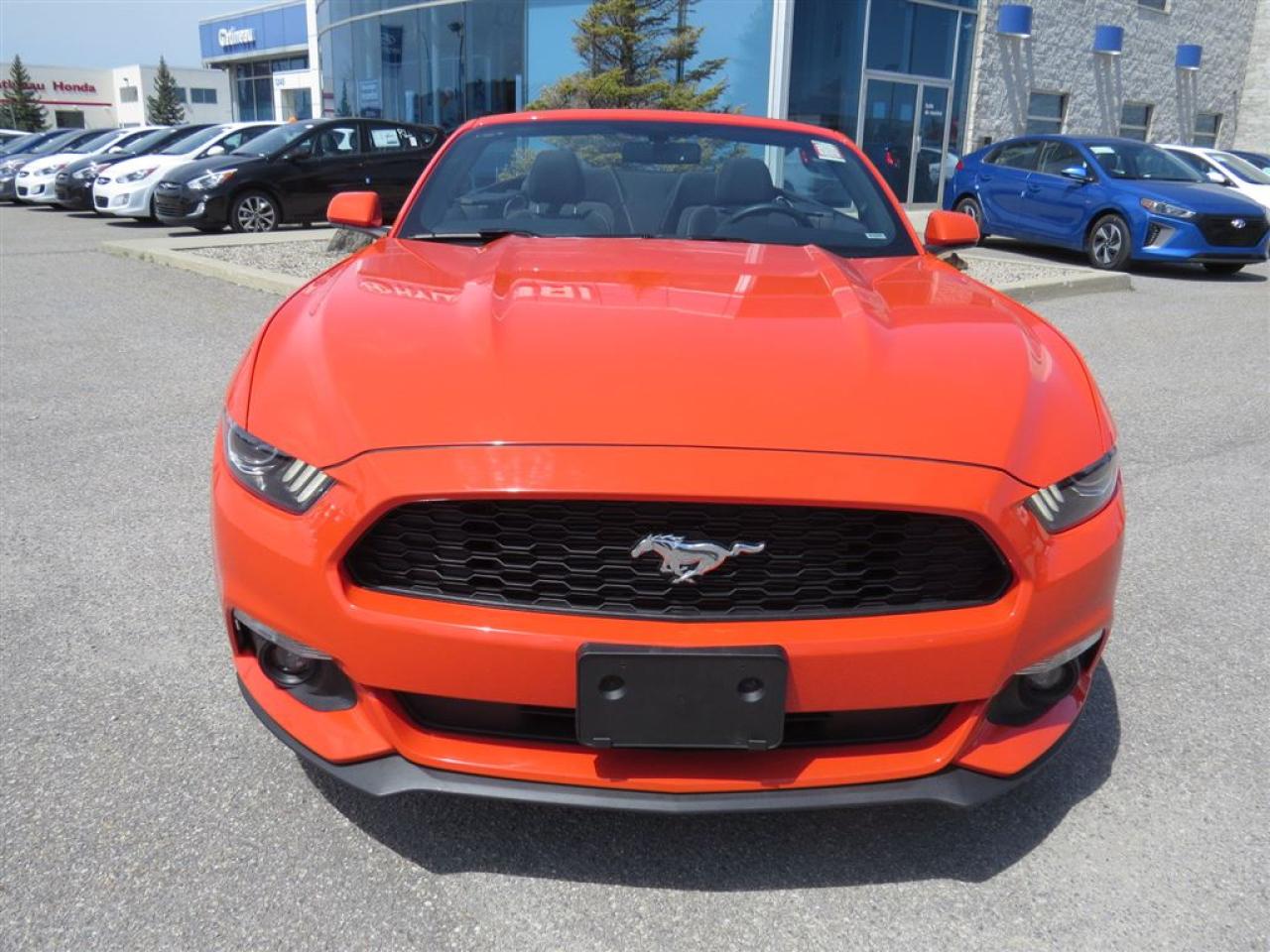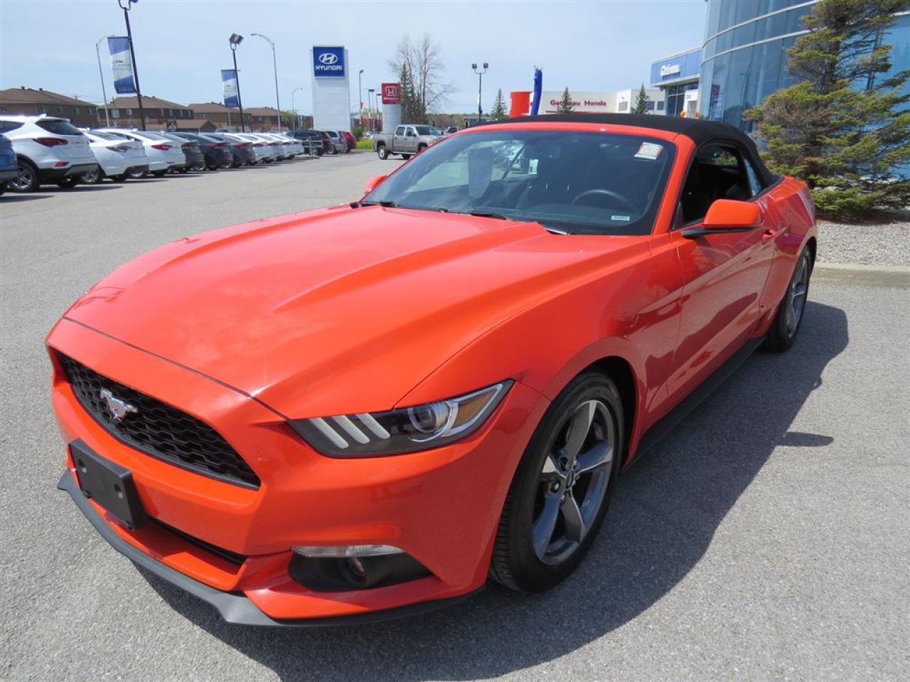 Ford Mustang 2016 V6 convertible, Automatique Voiture convertible V6, automatique,Roues en alliage d'aluminium, Régulateur de vitesse, Air climatiser, BLUETOOTH, démarrage avec bouton poussoir, siège électrique etc Chez Hyundai Gatineau tous nos véhicules sont minutieusement inspectés en 150 points et réparés par notre département de service certifié. Les véhicules âgés de moins de 8 ans sont garantis au complet au minimum 1 mois ou 1700km (en plus de transférer la garantie du manufacturier).On vous fournit également le rapport Car Proof et le kilométrage est certifié. Garantie prolongée disponible sur tous nos véhicules. Nous reprenons les échanges de toutes marques et chez Hyundai Gatineau. De plus, nous offrons différents plans de financement à taux très avantageux. Nous avons des spécialistes de 2 ième chance au crédit surplace avec plus de 10 ans d'expérience dans le domaine. Nous sommes en service depuis plus de 18 ans et grâce à plusieurs références, notre clientèles vient de partout au Québec Rive Nord, Rive Sud, Ville de Québec, Gaspésie, Montréal. Livraison rapide. Faite une demande internet ou appelez nous et voyez pourquoi chez Hyundai Gatineau, Ça vaut le détour!