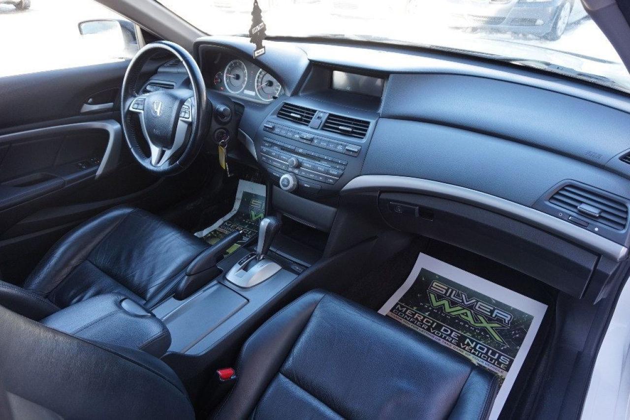 HONDA ACCORD 2009 COUPE Édition EX-L 4cyl 2.4 Litres i-VTEC ** FULL ÉQUIPÉ CUIR TOIT OUVRANT 8 ROUES INCLUS -- TRANSMISSION AUTOMATIQUE 5 RAPPORTS --- AVEC SEULEMENT 104 000 KM CERTIFIÉ / JAMAIS ACCIDENTÉ : ENTRETENU DIRECTEMENT CHEZ HONDA / 4 CYLINDRES 2.4 Litres i-VTEC TRÈS ÉCONOMIQUE, DURABLE ET FIABILITÉ HONDA RECONNUE (JAMAIS ACCIDENTÉ : RAPPORT CARPROOF DISPONIBLE) COULEUR EXTÉRIEUR BLANC, INTÉRIEUR EN CUIR NOIR / SIÈGES CHAUFFANTS-ÉLECTRIQUES INSPECTION COMPLÈTE INCLUSE -- ÉCHANGE ACCEPTÉ --- FINANCEMENT SUR PLACE À PARTIR 4.99 % -- GARANTIE INCLUS : 1 MOIS OU 1700 KM GROUPE MOTOPROPULSEUR -- POSSIBILITÉ DE GARANTIE PROLONGÉE À PRIX IMBATTABLE Avec Caa et Groupe Ppp. ÉQUIPEMENT COMPLET EX-L : AIR CLIMATISÉ - RÉGULATEUR DE VITESSES - TOIT OUVRANT ÉLECTRIQUE - AILERON - JANTES 16 POUCES / PNEUS D'ÉTÉ BON - ROUES D'ACIER / PNEUS DHIVERS EXCELLENT - ORDINATEUR DE BORD - LECTEUR CD-Mp3 - CONTRÔLE AUDIO AU VOLANT - CHARGEUR 6 CD - TRACTION CONTRÔLE - VITRES TEINTÉES - VOLANT AJUSTABLE === POUR PLUS DE RENSEIGNEMENTS DEMANDEZ (DAVID.LAMONTAGNE) 418-903-5882 // 418-931-4036 Cell === FINANCEMENT FACILE SUR PLACE 4.99 % NOUS SOMMES OUVERTS 6 JOURS : 2430 BOUL GUILLAUME-COUTURE, LÉVIS G6W-2R5 : AU PLAISIR DE VOUS SERVIR WWW.AUTOSOCCASIONS.CA