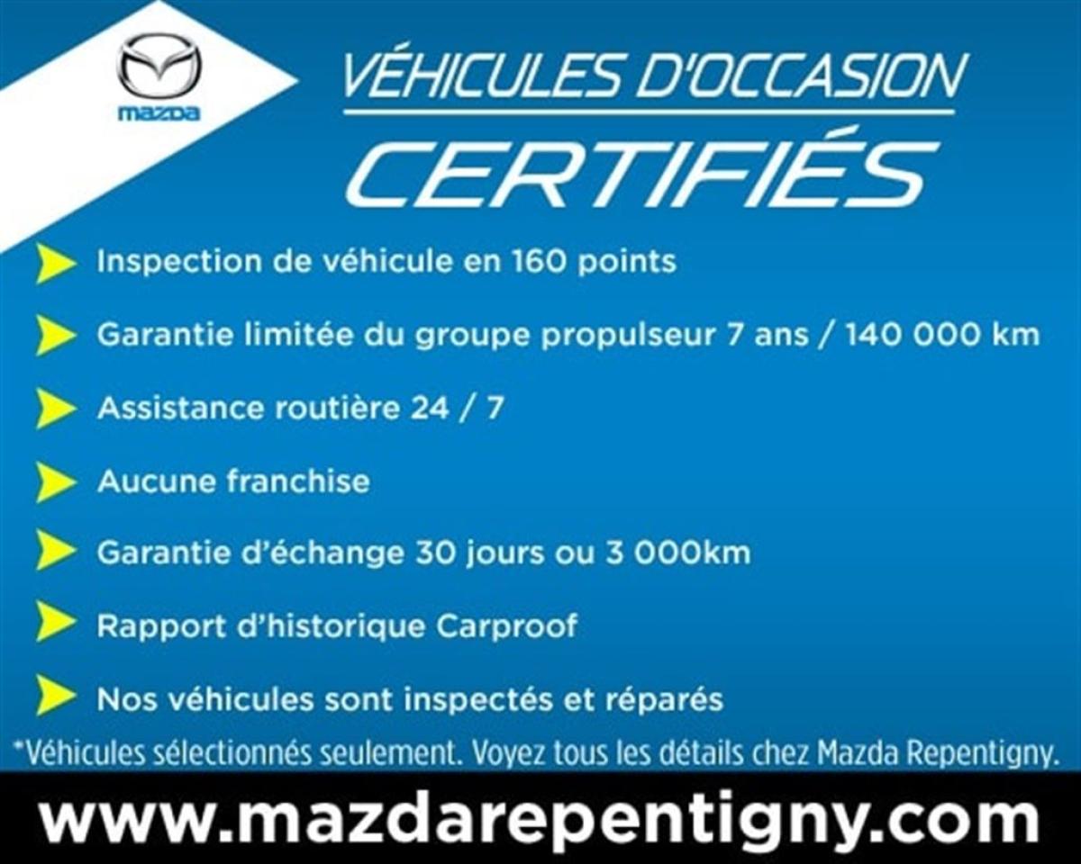 toit ouvrant+cuir+bluetooth+sièges chauffants+régulateur de vitesse+climatisation+siège électrique+phares automatique+essuie glace détecteur de pluie+mags et plus a qui la chance !!! MAINTENANT OUVERT LE SAMEDI !!! Mazda Repentigny: Votre concessionnaire de choix pour un véhicule neuf ou d'occasion. Financement à partir de 0% pour un véhicule d'occasion certifié. Financement 1-2-3e chance au crédit disponible. Meilleurs taux de l'industrie. Venez voir pourquoi nous sommes votre référence automobile. Faites un essai routier dès aujourd'hui de votre prochain véhicule acheté chez Mazda Repentigny