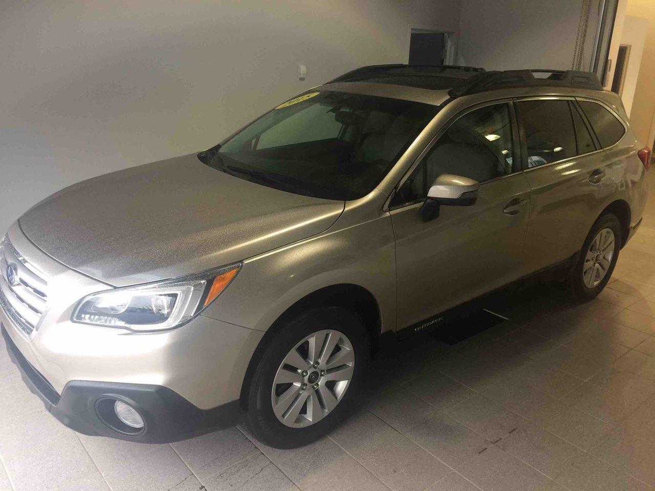 Subaru Outback 3.6r W/touring Pkg 2015\n\nRégulateur de vitesse, Toit ouvrant, Essuie-glaces intermittents, Freins ABS, Contrôle de stabilité, Coussin gonflable conducteur, Coussins gonflables latéraux, Lecteur CD, Lecteur MP3, Portes électriques, Sièges électriques, Vitres électriques, Air climatisé, Sièges chauffants, Volant ajustable, Moonroof, Tapis protecteurs, Radio satellite, Caméra de recul, Phares automatiques, Rétroviseur électrique, Direction assistée, Rétroviseurs chauffants, Siège à réglage électrique, Coussins gonflables arrière pour la tête, Sièges tissu, Siège conducteur - soutien lombaire, Freins à disque, Sièges chauffants - Avant, Jantes en alliage, Antipatinage, Phares antibrouillards, Verrous de sécurité pour enfants, Sièges baquets, Technologie Bluetooth intégrée, Cache bagages, Rétroviseur à atténuation automatique, Surveillance de l'angle mort, Aluminium, Climatisation\n\nPOUR LE PLUS GRAND CHOIX À UN SEUL ENDROIT, LE MEGA CENTRE DE L'USAGÉ DANS L'EST DU QUÉBEC. COUVRANT LA GRANDE RÉGION DE RIMOUSKI, MATANE, MONT-JOLI, RIVIÈRE-DU-LOUP, STE-ANNE DES MONTS, MATAPÉDIA,GASPÉSIE... CONTACTEZ-NOUS SANS FRAIS AU 1-877-864-3666 LIVRAISON PARTOUT AU QUÉBEC.