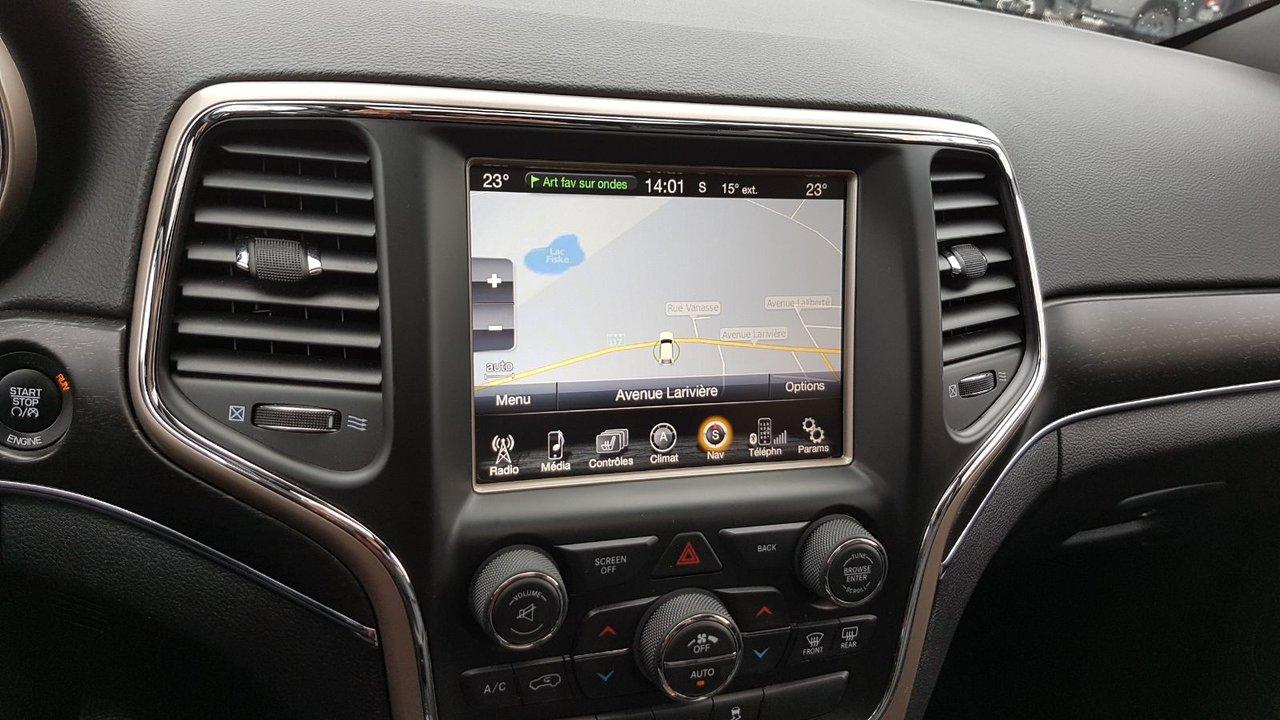 Jeep Grand Cherokee Limited TRES BAS KM 2015Régulateur de vitesse, Toit ouvrant, Essuie-glaces intermittents, Essuie-glace arrière, Anti-démarreur, Freins ABS, Contrôle de stabilité, Coussin gonflable conducteur, Coussins gonflables latéraux, Démarreur à distance, Lecteur CD, Lecteur MP3, 6 Haut-parleurs, Portes électriques, Tachymètre, Vitres électriques, Air climatisé, Intérieur en cuir, Climatisation deux zones, Commandes audio au volant, Sièges arrières rabattables, Sièges chauffants, Siège mémoire, Volant ajustable, Tapis protecteurs, Vitres teintées, Attelage remorque, Phares haute intensité, Ordinateur de bord, Tout équipé, Caméra de recul, Radio AM/FM, Rétroviseurs, Volant gainé de cuir, Phares automatiques, Rétroviseur électrique, Sièges arrières chauffants, Direction assistée, Télédéverrouillage, Rétroviseurs chauffants, Banquette arrière divisé, Siège à réglage électrique, Système d\'alarme, Coussins gonflables arrière pour la tête, Siège conducteur - soutien lombaire, Siège passager - soutien lombaire, Essuie-glace détecteur de pluie, Démarrage sans clé, Freins à disque, Sièges chauffants - Avant, Rétroviseurs électriques, Jantes en alliage, Antipatinage, Phares antibrouillards, Verrous de sécurité pour enfants, Système de surveillance de la pression des pneus, Sièges baquets, Prise Auxiliaire, Technologie Bluetooth intégrée, Port USB, Climatiseur automatique, Aide au stationnement (capteurs), Cache bagages, Coussin gonflable - Commutateur de mise en/hors fo, Rétroviseur à atténuation automatique, Aluminium, Climatisation, Volant chauffant