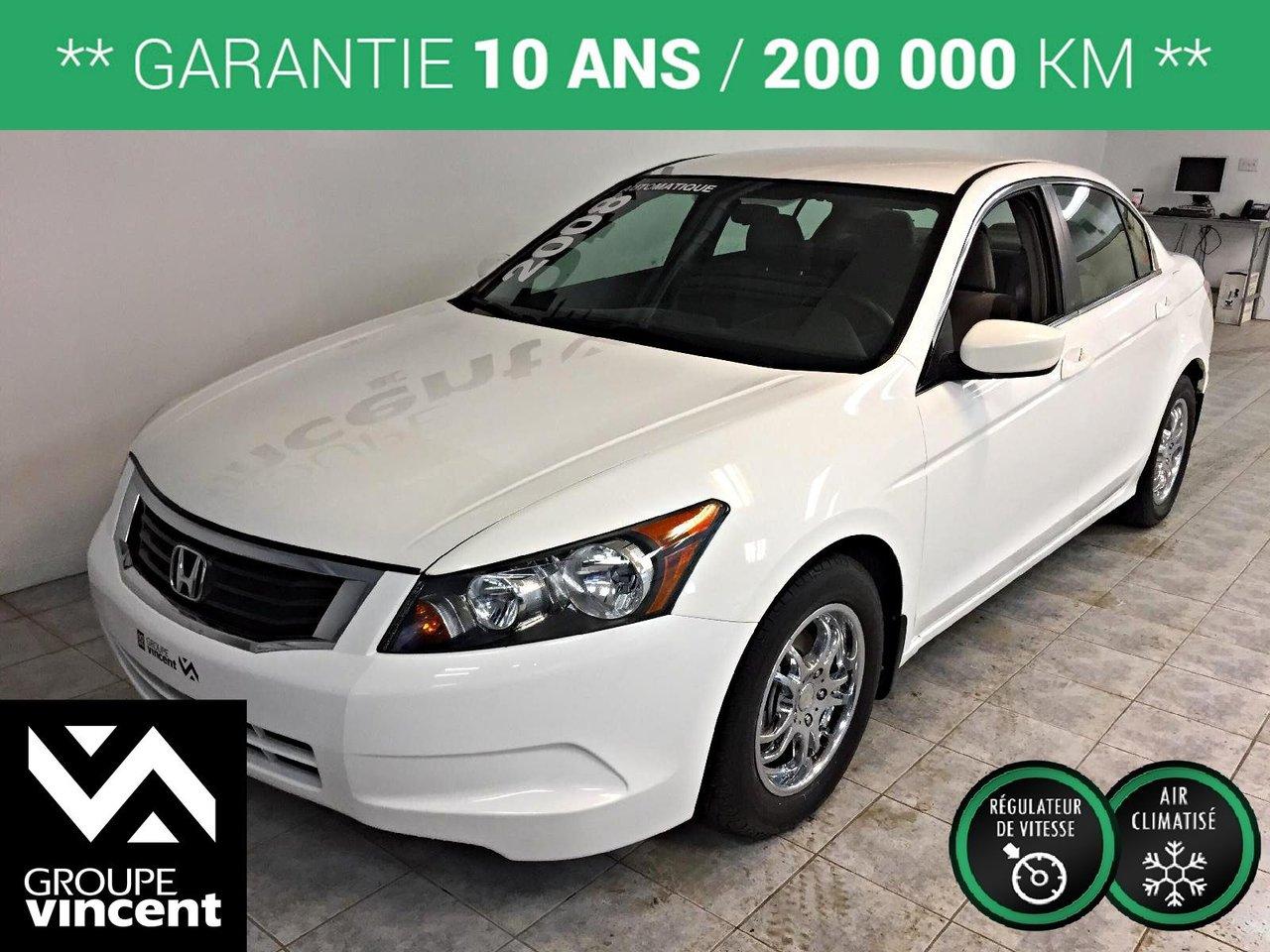 Honda Accord LX *** Climatiseur *** La fiabilit? avant tout ! 2008Régulateur de vitesse, Essuie-glaces intermittents, Anti-démarreur, Freins ABS, Contrôle de stabilité, Coussin gonflable conducteur, Coussins gonflables latéraux, Lecteur CD, Lecteur MP3, 6 Haut-parleurs, Portes électriques, Tachymètre, Vitres électriques, Air climatisé, Commandes audio au volant, Lampes de lecture arrière, Volant ajustable, Enjoliveurs, Tapis protecteurs, Vitres teintées, Radio AM/FM, Phares automatiques, Rétroviseur électrique, Direction assistée, Télédéverrouillage, Rétroviseurs chauffants, Système d\'alarme, Sièges tissu, Freins à disque, Rétroviseurs électriques, Jantes en alliage, Antipatinage, Verrous de sécurité pour enfants, Système de surveillance de la pression des pneus, Sièges baquets, Prise Auxiliaire, Climatisation
