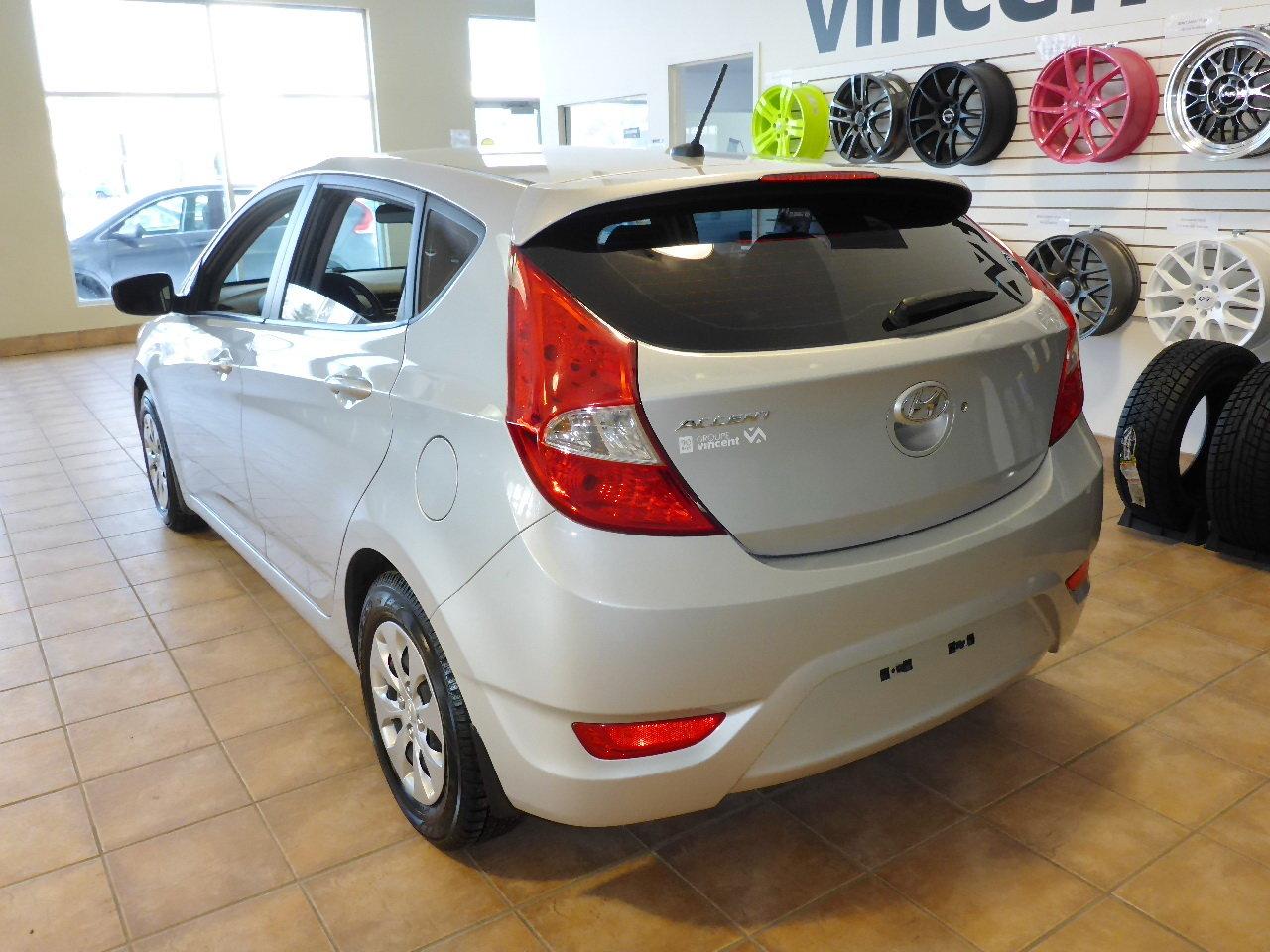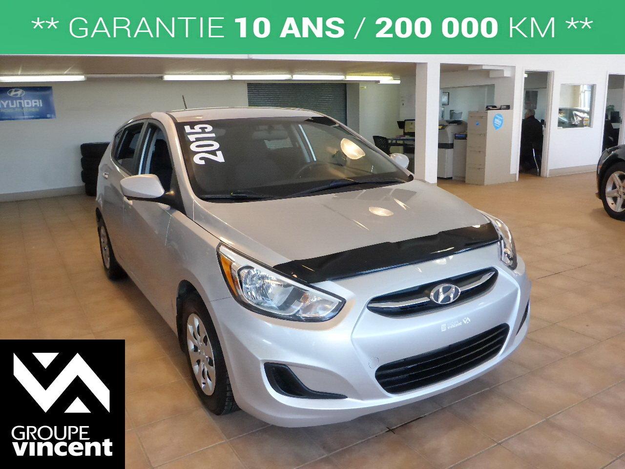 Hyundai Accent GL**climatiseur** Fiable et ?conomique ! 2015Régulateur de vitesse, Essuie-glaces intermittents, Essuie-glace arrière, Anti-démarreur, Freins ABS, Contrôle de stabilité, Coussin gonflable conducteur, Coussins gonflables latéraux, Lecteur CD, Lecteur MP3, 6 Haut-parleurs, Portes électriques, Tachymètre, Vitres électriques, Air climatisé, Sièges arrières rabattables, Volant ajustable, Tapis protecteurs, Radio AM/FM, Phares automatiques, Direction assistée, Télédéverrouillage, Banquette arrière divisé, Coussins gonflables arrière pour la tête, Sièges tissu, Essuie-glace détecteur de pluie, Freins à disque, Rétroviseurs électriques, Antipatinage, Verrous de sécurité pour enfants, Sièges baquets, Cache bagages