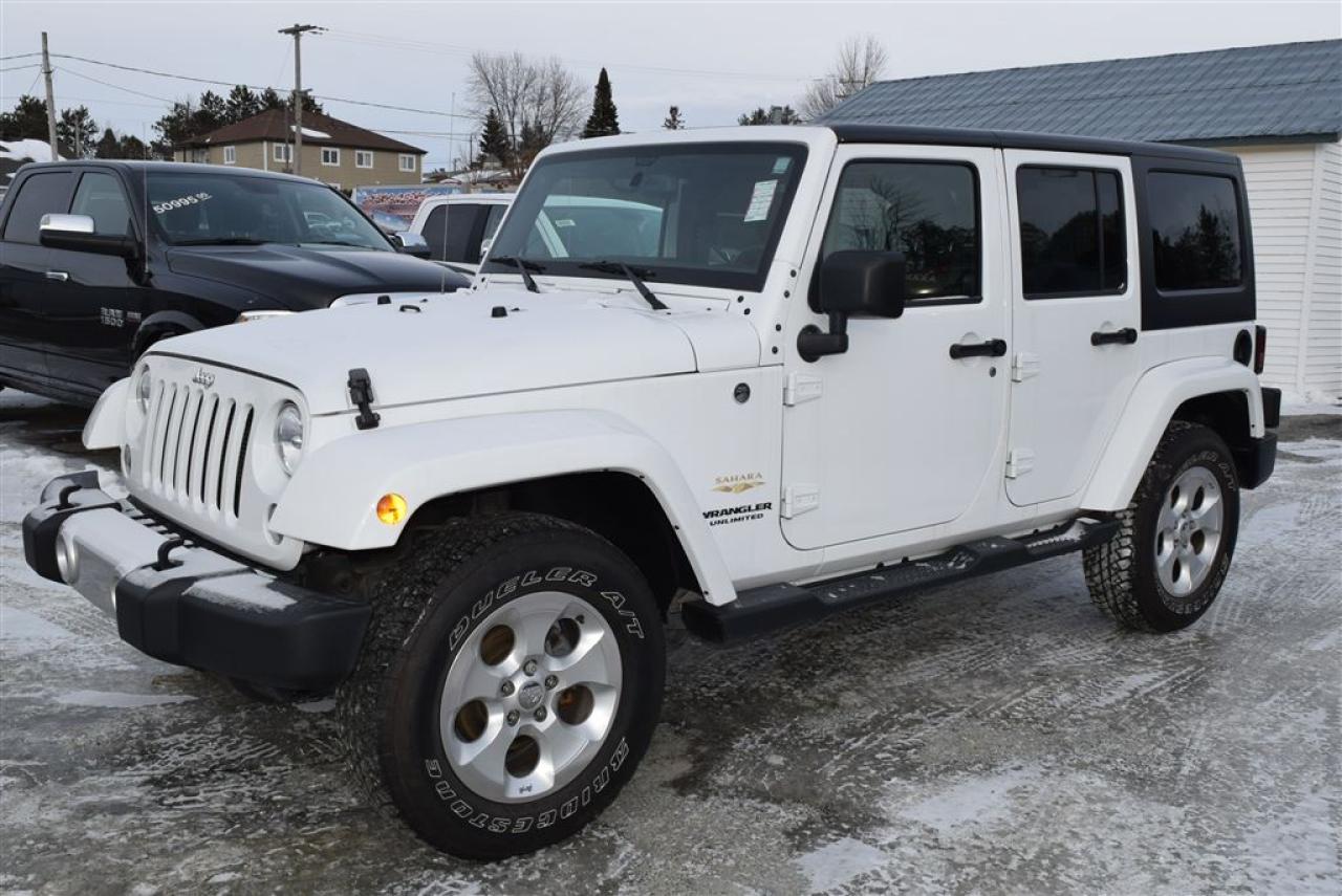 2015 Jeep Wrangler Sahara Unlimited, 4x4, d'occasion, très propre,2 toits, Navigation, Bluetooth, Automatique, Démarreur à distance, Balance de Garantie du manufacturier, Auto, à vendre Chez Élite Chrysler Jeep Dodge Ram, le plus grand choix en inventaire. À Sherbrooke en Estrie Possibilité de Livraison partout au Québec !!!!!! Pour plus de détails, pour un essai routier ou même l'achat, Communiquer avec l'un de nos conseillers en vente sans frais au 1-888-647-5468. Financement sur place. (1ère et 2ième Chance)