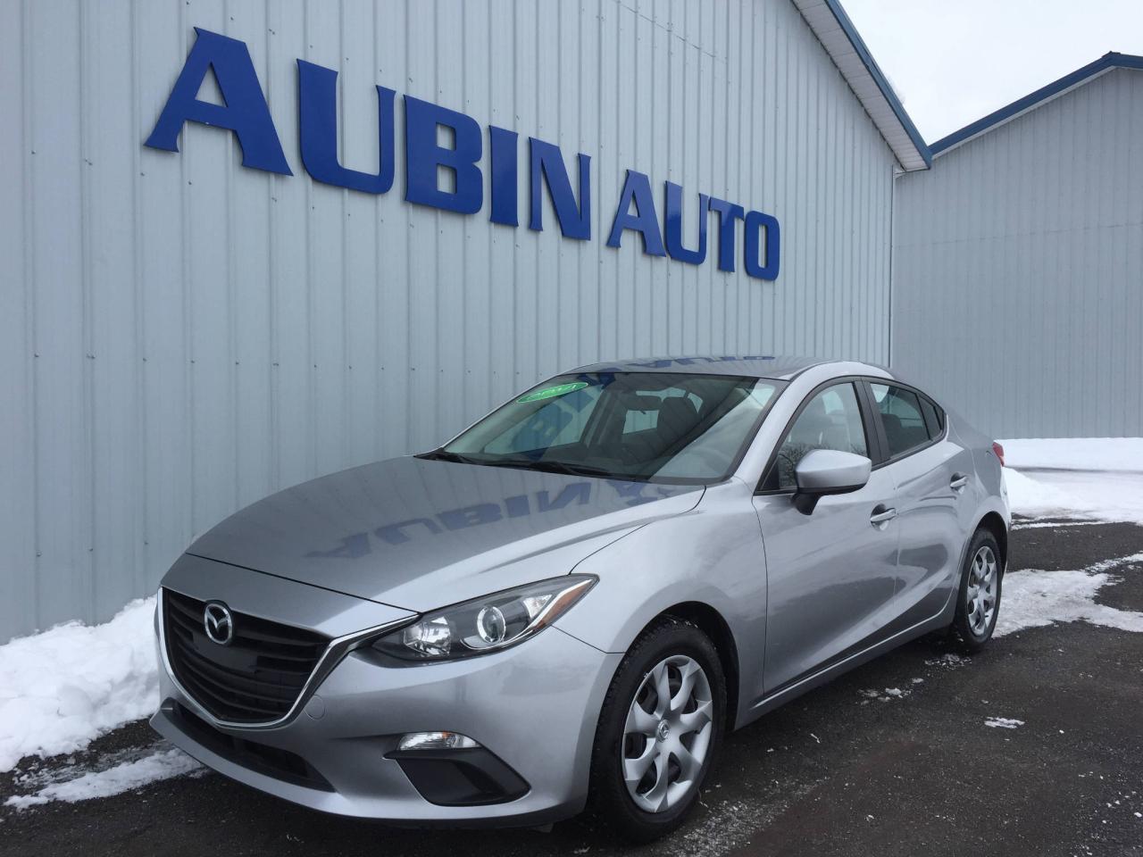 MAZDA 3 GX-SKY BERLINE 2014, AUTOMATIQUE, A/C, DÉMARRAGE SANS CLÉ, COULEUR ARGENT INTÉRIEUR EN TISSU NOIR, LECTEUR MP3, VITRES ET MIROIRS ÉLECTRIQUES, 59 660 KM AU PRIS DE 11 495.00 $...TOUT NOS VEHICULES SONT INSPECTES AVANT LIVRAISON. FINANCEMENT DISPONIBLE SUR PLACE 1er 2e 3e CHANCE AU CREDIT, RAPPORT CARPROOF DISPONIBLE, ECHANGE ACCEPTE. VEUILLEZ NOUS TELEPHONER POUR PLUS DINFORMATIONS ET POUR VOUS ASSURER QUE LE VEHICULE EST TOUJOURS DISPONIBLE. VENEZ FAIRE UN ESSAI ROUTIER CHEZ AUBIN AUTO MAINTENANT AU 1014 BERGERON, SAINT-AGAPIT, G0S1ZO