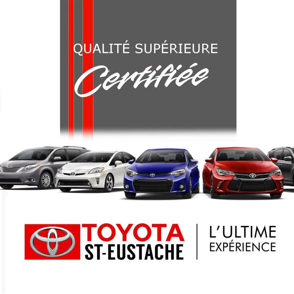 TOUS NOS VÉHICULES ''TOYOTA'' SONT SOIGNEUSEMENT INSPECTÉS EN 160 POINTS ET RECONDITIONNÉS SELON LES NORMES RIGOUREUSES DE TOYOTA.FINANCEMENT DISPONIBLE SUR PLACE À DES TAUX TRÈS AVANTAGEUX.CHEZ TOYOTA ST-EUSTACHE NOUS VOUS OFFRONS DES VÉHICULES D'OCCASION CERTIFIÉS AU MEILLEUR RAPPORT ''QUALITÉ/PRIX''.