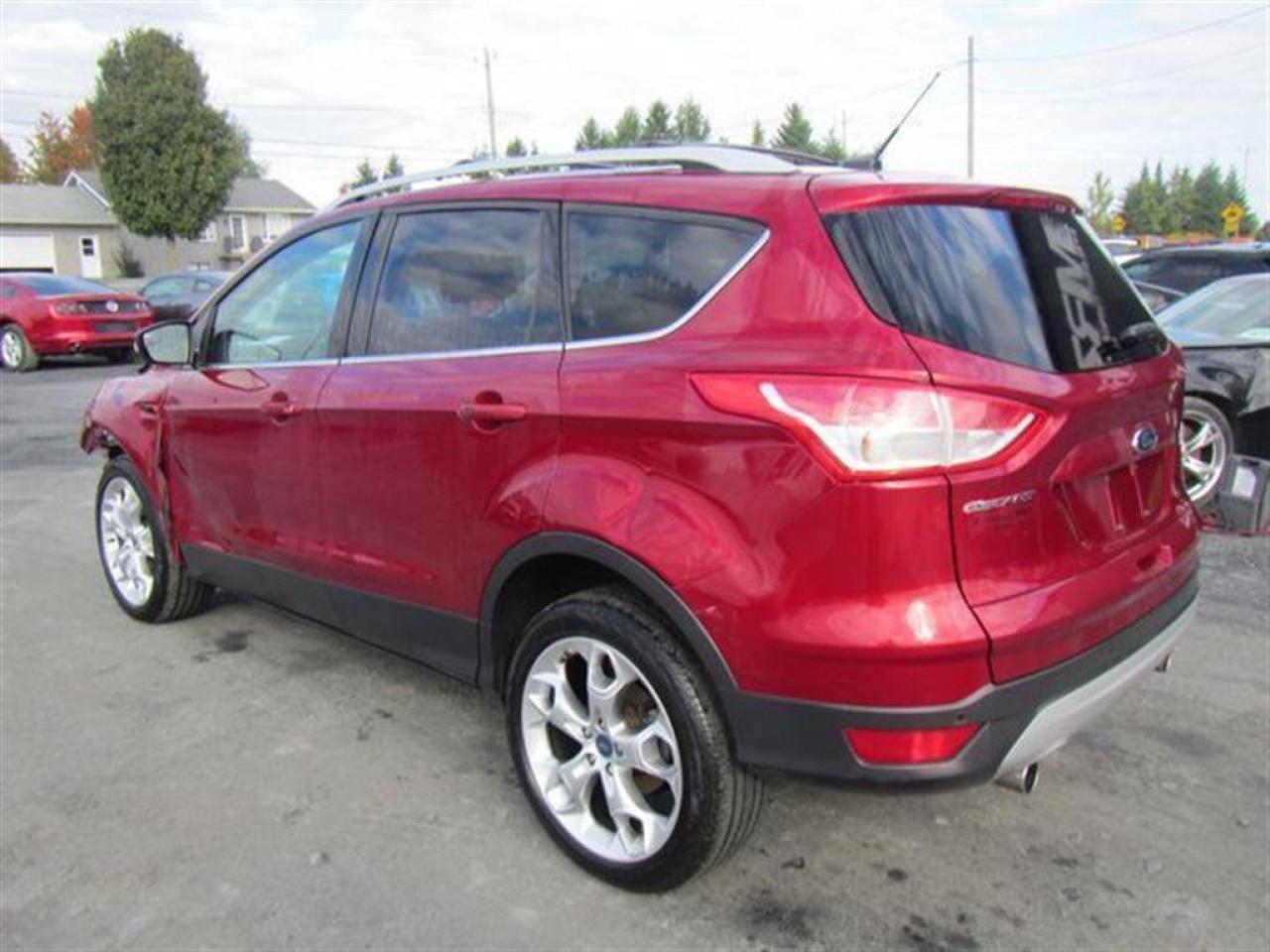 Ford Escape Titanium 2013 Rouge ruby métallique, Très belle couleur à voir absolument!! Le plus équipé des Escape disponible sur le marché!! À ne pas manquer! - * Visitez le WWW.MRZPERFORMANCE.COM pour tous détails et beaucoup plus de photos! * - Moteur 4 Cyl Ecoboost de 2.0l développant 240HP et 270 lbs/tq! TRÈS puissant pour la grosseur du véhicule!! Transmission automatique 6 vitesses. Traction intégrale ( AWD ) - Très économique!! +/- 8.5 litres au 100km!! Très bas kilométrage! Seulement 26000km. Full équip!! Intérieur en cuir noir - Siège chauffants et électriques - Mags 19'' avec tires neufs - Système de navigation GPS - Lumières avant HID - Miroirs électriques et chauffant - Vitres teintées - Rack de toit - Aileron - Commande au volant - SYNC - Télécommande d'ouverture porte de garage - A/C bi zones - MYKEY - MYFORD TOUCH - 1 Clé + Démarreur à distance OEM - Toit ouvrant panoramique - Sirius - Lecteur CD - Cruise control - Fogs lamp - ETC! Accidenté léger à l'avant du véhicule. Besoin d'un devant assemblé ( Disponible à 5000$ ). Nous pouvons vous fournir les pièces nécessaires à la réparation de ce véhicule à prix très compétitif. Disponible tel quel ou réparé par des professionnels et inspecté par la SAAQ - Mécanique en parfait état de marche!! Ballon AVG, ballon genoux gauche et ceinture gau déployés. Pas cher dans le neuf. *** VGA CANADIEN / SALVAGE TITLE*** - Valeur a neuf de plus de 42 600$!! *** Pas de camouflage de dommages sur nos véhicules! PLUSIEURS AUTRES ESCAPE 2013 EN STOCK !!!! Venez nous voir ou allez visité notre site internet pour plus d'informations! *** Acheter en toute tranquillité car nous sommes membres AMVOQ! Automobiles MRZ, la référence dans l'accidenté léger au Québec! WE SPEAK ENGLISH PLEASE CONTACT US - MRZ IS THE VEHICLE CAR EXPORT AND IMPORT SPECIALIST - USA - AFRICA - MIDDLE EAST - EUROPE - MRZ EST LE SPÉCIALISTE EN EXPORTATION et IMPORTATION DE VÉHICULES - USA - AFRIQUE - EUROPE - PROCHE ORIENT - Visitez-nous aussi sur Facebook - Merci!