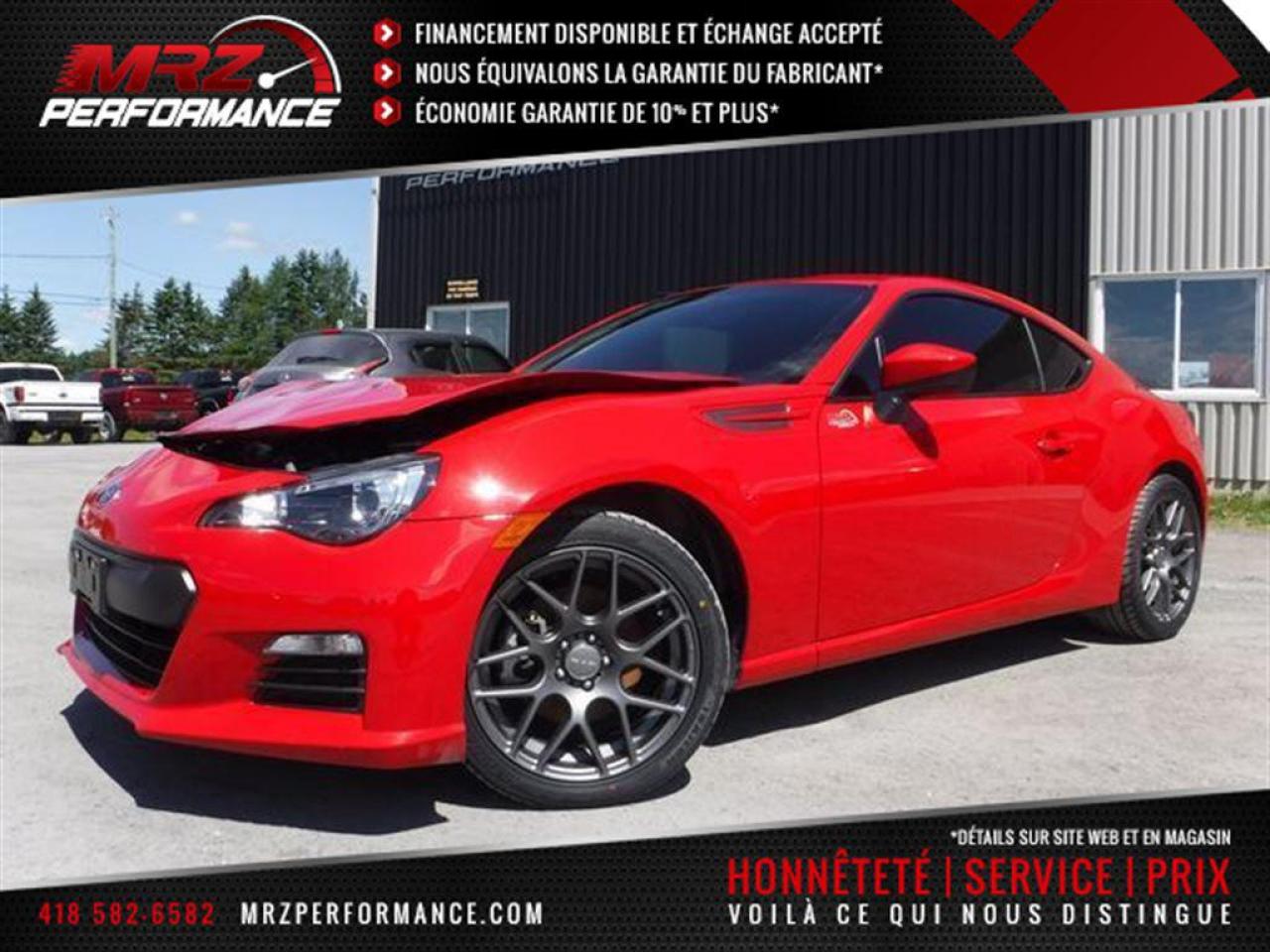 Subaru BRZ Sport -Tech 2015 Rouge - Manuel 6 vitesses - Très belle voiture sport avec un look qui fait tourner les têtes a tout coup! Une des plus belles couleur sur le marché!! Beaucoup d'argent investit, Mags, Exhaust de performance, Vitres teintées et encore plus!! Faites vite modèle très recherché!! - * Visitez le WWW.MRZPERFORMANCE.COM pour tous les détails et beaucoup plus de photos! * - Quel beau bolide! À NE PAS MANQUER!! Moteur H4 Cyl de 2.0l (200hp) avec transmission manuelle à 6 rapports rapprochés. Propulsion arrière (RWD). Vraiment très propre!! État neuf - 18200 km!! - Modèle full full équip!! Très beau Mags 17'' RTX avec Pneus d'étés flambant neufs unidirectionnels (215/45 a l'avant et 245/40 a l'arrière pour meilleure tenue de route) c'est un kit de $1400 - 2X Clés intelligentes + 1X Clé mécanique - Sièges modèle SPORT noir avec broderie rouge - Vitres et Miroirs électriques - Commandes au volant - Tout électrique - Cruise control - A/C - Lecteur CD/MP3 - Servodirection - Vitres teintées - Système navigation GPS avec grosse écran tactile - Prise IPOD - Prise 12V - Prise USB - Wiper intermittent - Lumières LED arrière VALENTI (vaut $500) - Bluetooth - Lumières avant au Xénon - Bouton VSC Sport - Valise électrique - STARLINK - Radio XM - Tapis caoutchouc WEATHER TECH - Exhaust de performance INVIDIA qui donne un son incroyable! (vaut $1000) - ETC! Accidenté légèrement à l'avant droit du véhicule seulement. Très belle accident facilement réparable à faible coût. Pour la réparation, Besoin seulement de l'Aile avec Fausse aile avant droit, Parebrise, Hood, Grille wiper, Lumière avant droit, Support radiateur supérieur, Ketch hood, Boitier filtre air, Couvert bumper avant et de quelques plastiques de finitions. A réparé: Porte droit (léger), Longeron supérieur droit (léger), Renfort bumper avant et le Couvert bumper arrière (grafigné). Le Radiateur les brackets sont cassées mais semble plein. Le Ballon du volant et les 2X Ceintures avant sont déployées (très abordable chez le dealer). Tous les autres Ballons et les autres Ceintures sont intacts. Nous pouvons vous fournir les pièces nécessaires à la réparation de ce véhicule à prix très compétitif. Disponible tel quel ou réparé par des professionnels et inspecté par la SAAQ - Aucun impact dans les roues, suspension et direction intacts!! Ce beau Subaru BRZ est présenté tel que nous l'avons acheté, pas étiré et pas camouflé comme chez la compétition. Acheté tel quel en marche, Run and drive. Aucun camouflage de dommages sur nos véhicules. VGA CANADIEN/ SALVAGE TITLE - Ne manquer pas la chance de vous procurez ce superbe BRZ à une fraction du prix d'un usagé!! Modèle Full équip avec GPS etc. Une des plus belles couleurs sur le marché!! Véhicule très recherché, dépêchez-vous!!!! Même chose qu'un SCION FRS! Tenue de route exceptionnelle grâce à son centre de gravité extrêmement bas! - PLUSIEURS AUTRES VOITURES SPORT EN STOCK!! Venez-nous voir ou allez visiter notre site internet pour plus d'informations! - N'hésitez pas à nous rejoindre avec vos questions! Automobiles MRZ, la référence dans l'accidenté léger au Québec! WE SPEAK ENGLISH PLEASE CONTACT US - MRZ IS THE VEHICLE CAR EXPORT AND IMPORT SPECIALIST - USA - AFRICA - MIDDLE EAST - EUROPE - MRZ EST LE SPÉCIALISTE EN EXPORTATION et IMPORTATION DE VÉHICULES - USA - AFRIQUE - EUROPE - PROCHE ORIENT Visitez-nous aussi sur Facebook! Merci!
