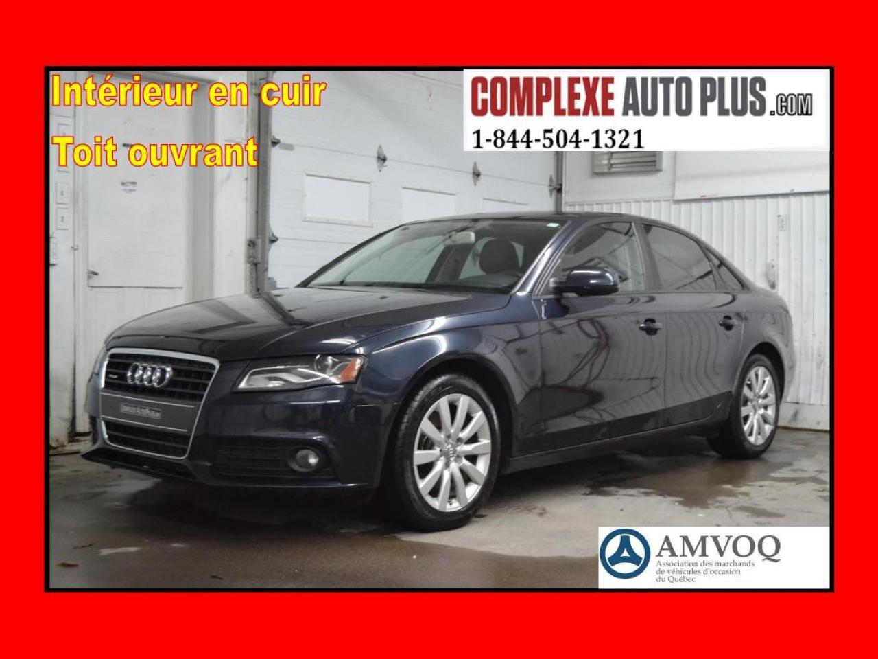 Jamais accidenté. Manuelle 6 vitesses Quattro!! Ultra propre, absolument impeccable! Véhicule inspecté et Garanti! Plan sécuritaire inclus dans le prix! Promotion spéciale: Financement 84$/sem. Tout inclus. 0$ comptant! GARANTIE 1 AN / 20 000 KM inclus dans les versements! Terme 60 mois à 4,99%. Équipements principaux: Intérieur en Cuir, Toit ouvrant, Miroirs chauffants, Ouverture du coffre à distance, Mags, Vitres teintées, Phares antibrouillards, Bluetooth, Sièges électriques et chauffants, Commandes au volant, Contrôle de stabilité et d'anti patinage, Régulateur de vitesse, Groupe électrique, Air climatisé automatique, Toute équipé! Rapport historique CarProof gratuit en main, Kilométrage vérifié et certifié, inspection sécuritaire mécanique fait, Réparation mécanique fait, Changement d'huile fait, Condition esthétique optimale, Garantie supplémentaire disponible! Appelez ou Textez au 1-844-504-1321. Véhicule sécuritaire vendu en toute transparence, vous procurant une tranquillité d'esprit. Nous sommes spécialisés pour le financement en 1ère 2ième 3ième chance au crédit. Frais de documents et frais de gestion de financement 199$, forfait esthétique 150$ inclus dans les versements, doit être ajouté au prix affiché. Le prix du véhicule est avant taxes. Les versements incluent les taxes. Détails et conditions en succursale. Site Complexe Auto Plus : WWW.COMPLEXEAUTOPLUS.COM\n\n