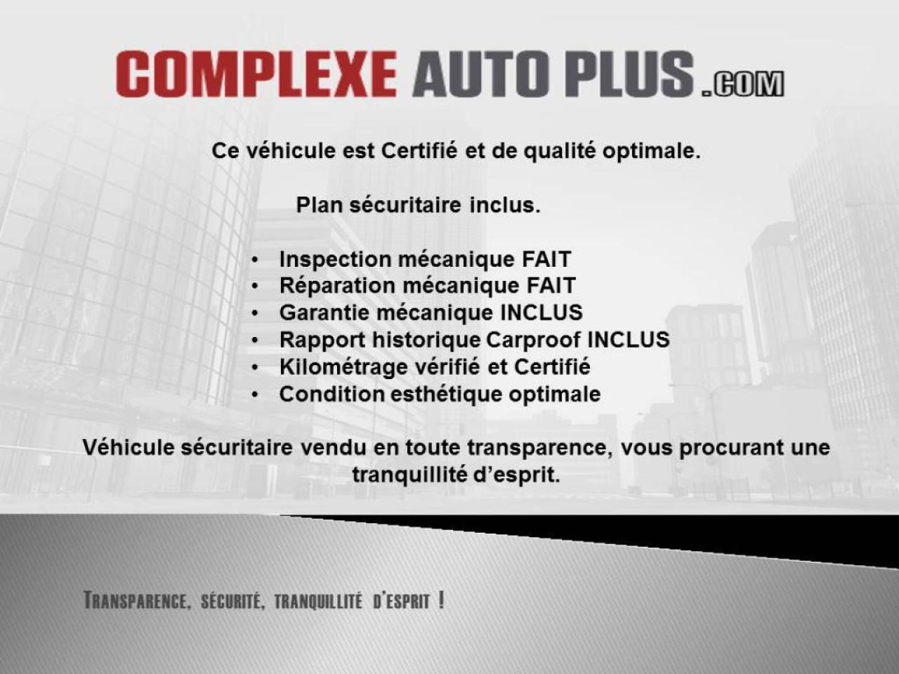 Never damaged. Ultra clean, impeccable! Comes with Inspection and Warranty! Safety plan included in the price! Special promotion: Financing $98/week all included $0 down payment! 1 YEAR / 20 000 KM WARRANTY included in the payments! Term 60 months to 4.99%. Main equipment: Leather interior, Panoramic sunroof, Mags, Tinted windows, Fog lights, Bluetooth, USB plug, Electric and heated seats, Control on steering wheel, Cruise control, Power group, Automatic dual zone air conditioning, Full equipped! Free CarProof history, Verified and certified mileage, Safety mechanical inspection is done, Mechanical repairs done, Oil change is done, Optimal aesthetic condition, Additional warranty available! Call us or Text us at 1-844-504-1321. Safety vehicle sold in all transparency, giving you peace of mind. We are specialize in 1, 2, 3 chance financing. Documents fees and financing management fees 199$, esthetic package 150$ included in the payments, must be added to the price shown. Taxes must be added to the price of the vehicle shown. Payments include taxes. Details and conditions in store. Complexe Auto Plus Website: WWW.COMPLEXEAUTOPLUS.COM