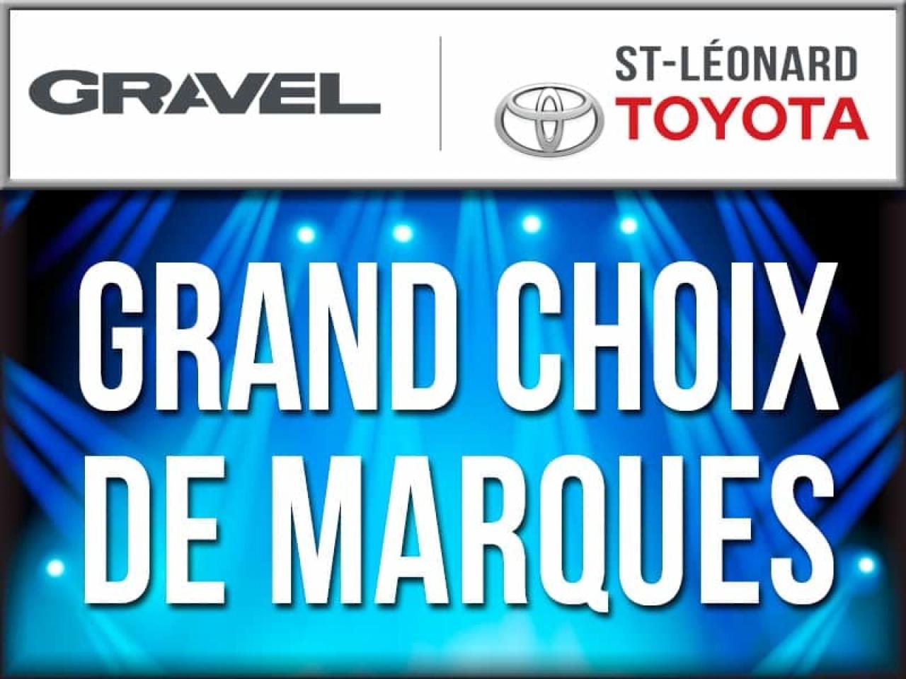 Jamais Accidenté ! Un Seul Propriétaire! Condition générale exceptionnelle et l`inspection certifiée de TOYOTA est complétée. 2e ET 3e CHANCE AU CRÉDIT SUR PLACE. Ouvert le samedi de 10h / 16h. Véhicules d'occasion certifiés en plus de 100 points mécanique et esthétique. Un rapport CARPROOF sans frais supplémentaire!GRAVEL TOYOTA ST-LÉONARD fait vraiment la différence sur place, venez nous mettre au défi. www.gravelauto.com.GRAVEL TOYOTA ST-LÉONARD na quun seul but, celui de donner le meilleur service après-vente et les meilleurs prix. Tous nos véhicules sont inspectés, certifiés en 100 points et chez GRAVEL TOYOTA ST-LÉONARD, on ne lésine pas avec la sécurité. Venez constater par vous-même la qualité de tous nos véhicules d`occasion. LE GROUPE GRAVEL, DEPUIS 1952 Pour un service sans limite! www.gravelauto.com.Nous répondons aux demandes d'informations par courriel 7/7 jours. //////////////////////////////////////////////////////////////////////////////////////////////////////////////////////////////////////////////////////////Never been accidented! Only one owner ! Great overall condition and certified Toyota inspection completed. 2nd and 3rd chance credit available. Open on Saturdays from 10am to 4pm. Certified used vehicles with 100 point mechanical inspections. Carproof at no extra cost! GRAVEL TOYOTA ST-LÉONARD has one main goal : to give the best customer service with the best prices. Our dedicated sales team at GRAVEL TOYOTA ST-LÉONARD will make your car shopping experience a dream. Come see us at GRAVEL TOYOTA ST-LÉONARD.Le Groupe Gravel, in business since 1952....For a service with no limits: www.gravelauto.com. We will respond to your questions 7/7 days. Vehicles can be delivered anywhere in Quebec