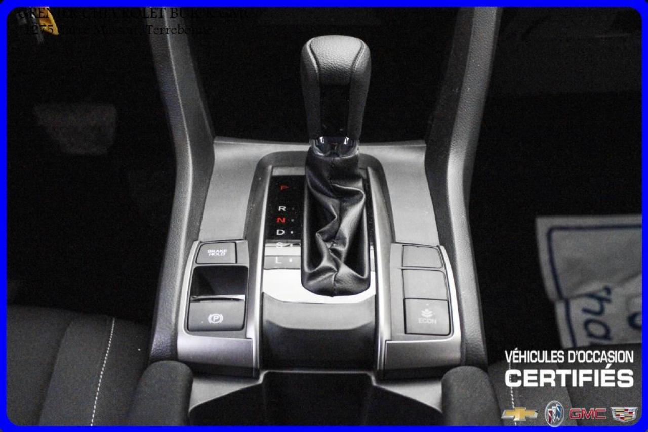 JAMAIS ACCIDENTÉ + ÉCRAN TACTILE AILERON JUPES 4 PNEUS D'ÉTÉ 4 PNEUS D'HIVER + caméra de recul + sièges chauffants + air climatisé + commandes vocales + commandes audio au volant + régulateur de vitesse + groupe électrique Garantie jusqu'au 30 Novembre 2021 ou 100 000 kilomètres À voir absolument : un superbe HONDA CIVIC 2017, à vendre chez GRENIER OCCASION CHEVROLET BUICK GMC NOUS SOMMES OUVERT 7 JOURS PAR SEMAINE POUR MIEUX VOUS SERVIR 1275 CARRÉ MASSON , TERREBONNE Nous sommes situé à 20 minutes Saint-Eustache/ Saint-Jérôme/Laval/Repentigny/montréal. Programme de véhicules d' occasion certifiés. Rapport Carproof disponible gratuitement. Inspection en 150 points. Le prix affiché inclus un rabais de 500 $ avec un financement.