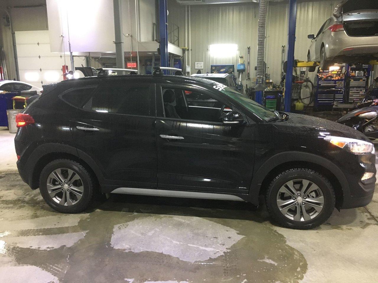 Hyundai Tucson 1.6T SE AWD CUIR Pneus d\'hiver unclus 2017Régulateur de vitesse, Essuie-glaces intermittents, Anti-démarreur, Freins ABS, Contrôle de stabilité, Coussin gonflable conducteur, Coussins gonflables latéraux, Lecteur MP3, Intérieur en cuir, Volant ajustable, Moonroof, Tapis protecteurs, Caméra de recul, Volant gainé de cuir, Phares automatiques, Rétroviseur électrique, Sièges arrières chauffants, Direction assistée, Rétroviseurs chauffants, Siège à réglage électrique, Coussins gonflables arrière pour la tête, Siège conducteur - soutien lombaire, Freins à disque, Sièges chauffants - Avant, Antipatinage, Phares antibrouillards, Verrous de sécurité pour enfants, Sièges baquets, Technologie Bluetooth intégrée, Surveillance de l'angle mort, Aluminium, Climatisation, Volant chauffant