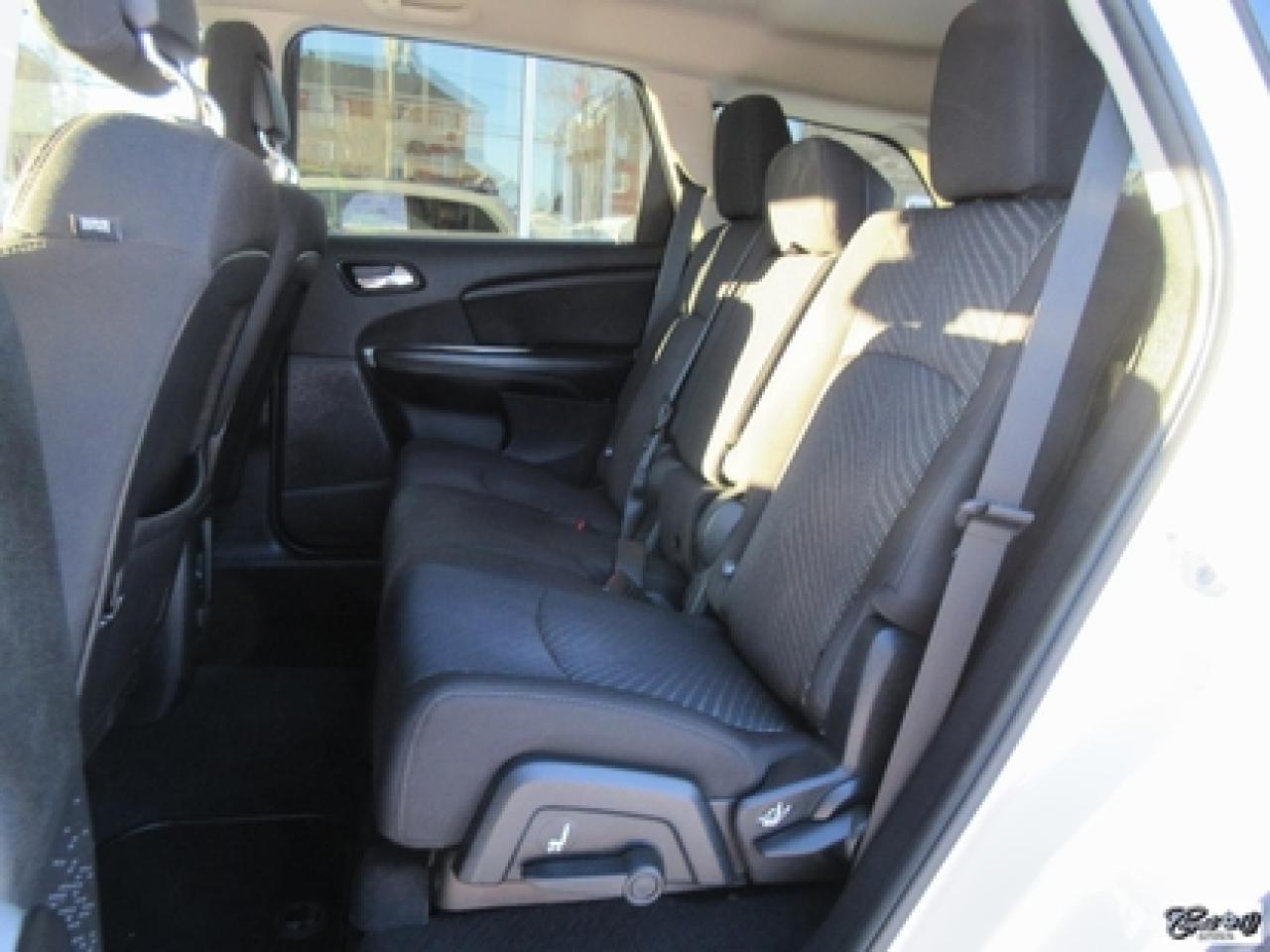Dodge Journey Limited 2014\n\nRégulateur de vitesse, Essuie-glaces intermittents, Essuie-glace arrière, Anti-démarreur, Freins ABS, Contrôle de stabilité, Coussin gonflable conducteur, Démarreur à distance, Lecteur CD, Lecteur MP3, Chauffe-moteur, Miroirs chauffants, Portes électriques, Sièges électriques, Tachymètre, Vitres électriques, Air climatisé, Climatisation deux zones, Commandes audio au volant, Sièges arrières rabattables, Sièges chauffants, Volant ajustable, Tapis protecteurs, Vitres teintées, Ordinateur de bord, Radio AM/FM, Direction assistée, Télédéverrouillage, Système d'alarme, Rétroviseurs électriques, Jantes en alliage, Antipatinage, Phares antibrouillards, Coussins gonflables, Support à bagages, Verrous de sécurité pour enfants, Système de surveillance de la pression des pneus, Dégivreur de lunette arrière, Miroirs ajustables de l'intérieur, Climatiseur automatique\n\nCaméra de recul, dem. à distance, écran tactile 8.4", volant et sièges chauffants, "bluetooth", vitres teintées, gr. électrique, A/C, siège conducteur électrique, superbe couleur blanc perle, entrée sans clé et +++. Véhicule très polyvalent, AUBAINE AUBAINE AUBAINE!!! Carproof disponible...