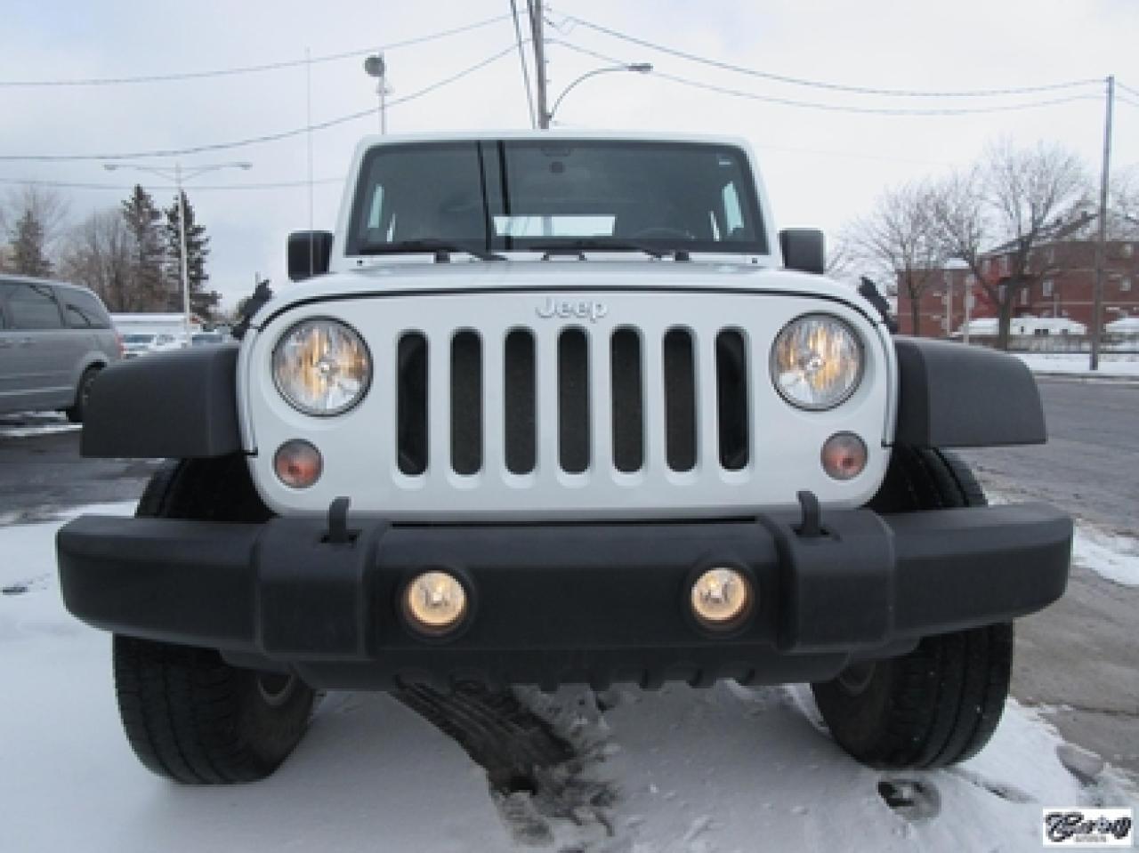 Jeep Wrangler Sport 2014\n\nRégulateur de vitesse, Essuie-glaces intermittents, Anti-démarreur, Freins ABS, Contrôle de stabilité, Coussin gonflable conducteur, Lecteur CD, Lecteur MP3, Chauffe-moteur, Tachymètre, Commandes audio au volant, Sièges arrières rabattables, Volant ajustable, Marchepieds, Tapis protecteurs, Attelage remorque, Ordinateur de bord, Radio AM/FM, Direction assistée, Jantes en alliage, Antipatinage, Phares antibrouillards, Système de surveillance de la pression des pneus, Sièges baquets\n\nSuperbe Jeep, 4 PNEUS HIVER SUR RIMS INCLUS, mags, marchepieds, attache-remorque, ratio du différentiel de 3.73, bas kilométrage, 1 seul proprio (55 ans), bien entretenu, freins comme neufs, faut voir!!! Carproof disponible, aucun accident...